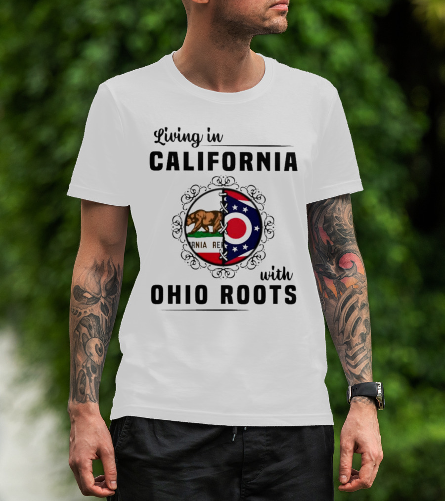 Living In California With Ohio Roots California Republic Ohio Flag Fusion T-Shirt