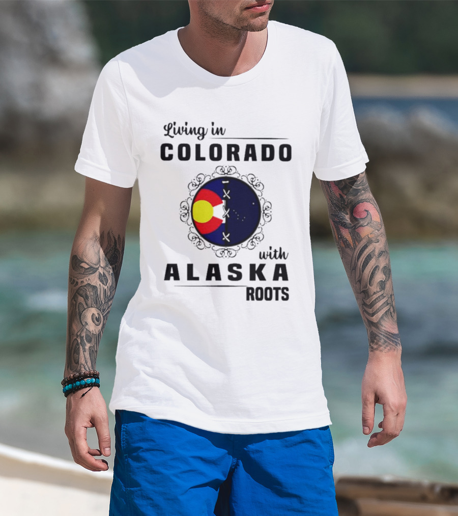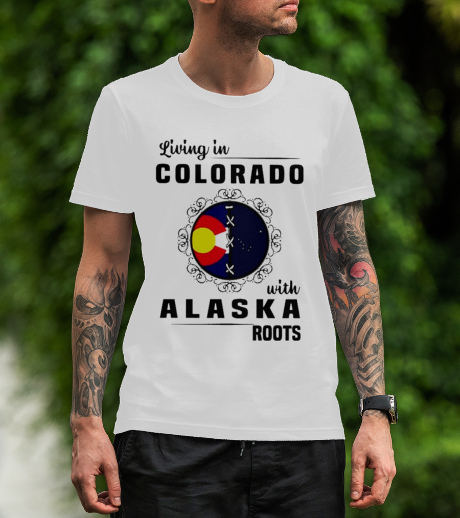 Living In Colorado With Alaska Roots Flag Circle T-Shirt