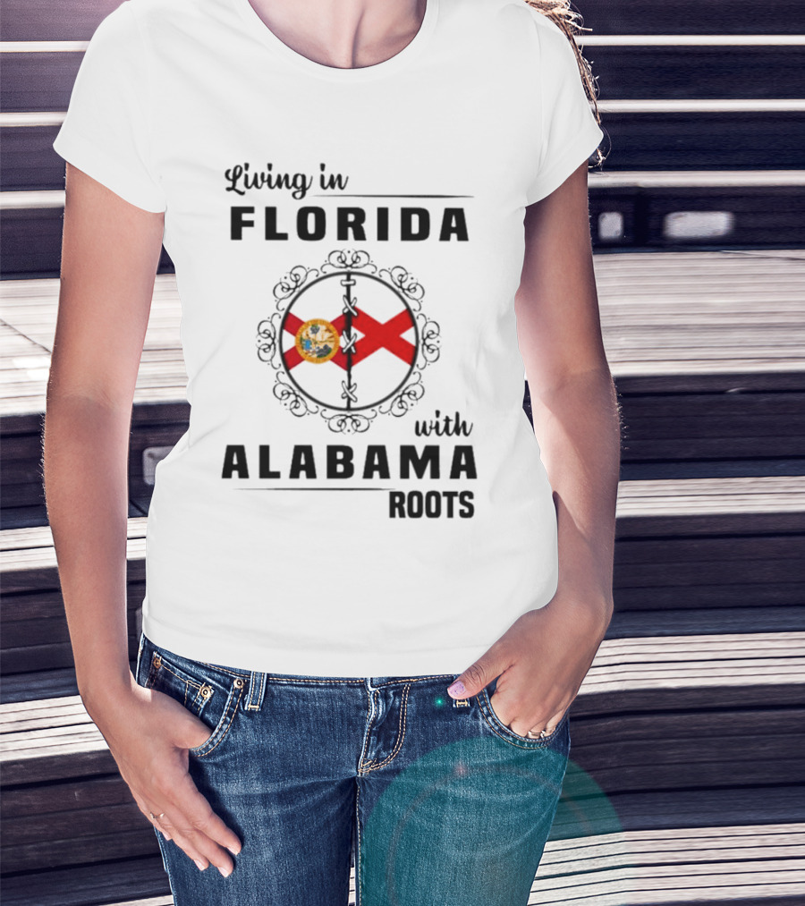 Living In Florida With Alabama Roots State Flags Circular T-Shirt