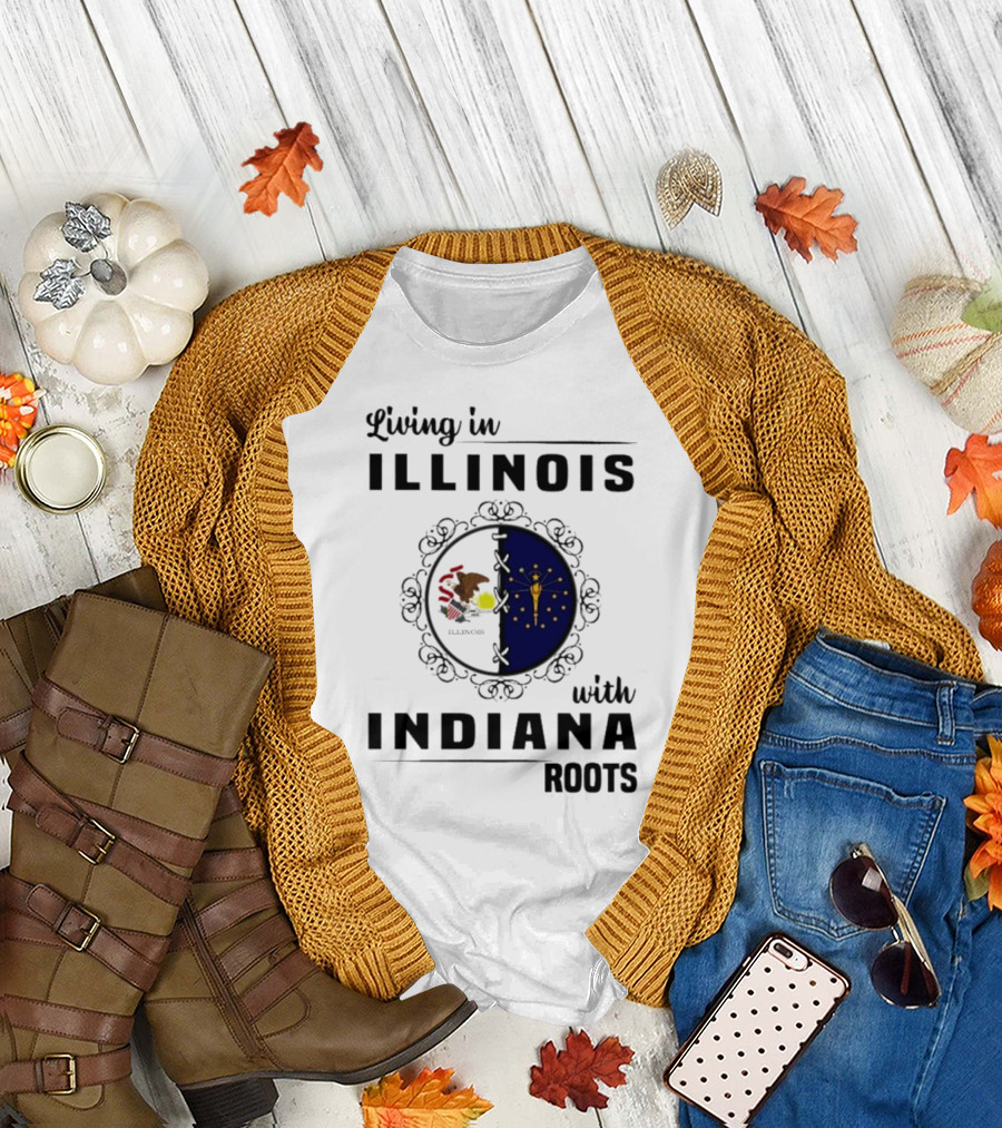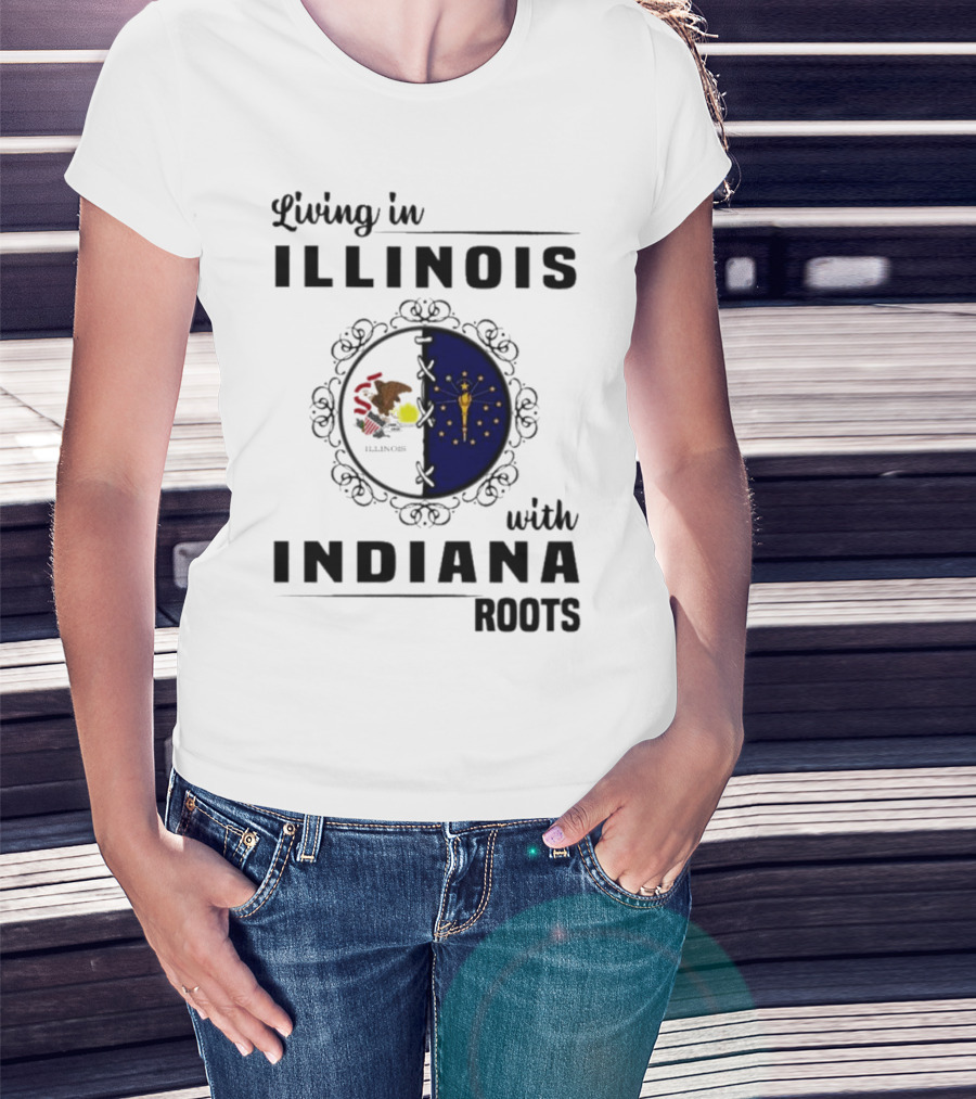Living In Illinois With Indiana Roots Iconic State Heritage Connection T-Shirt