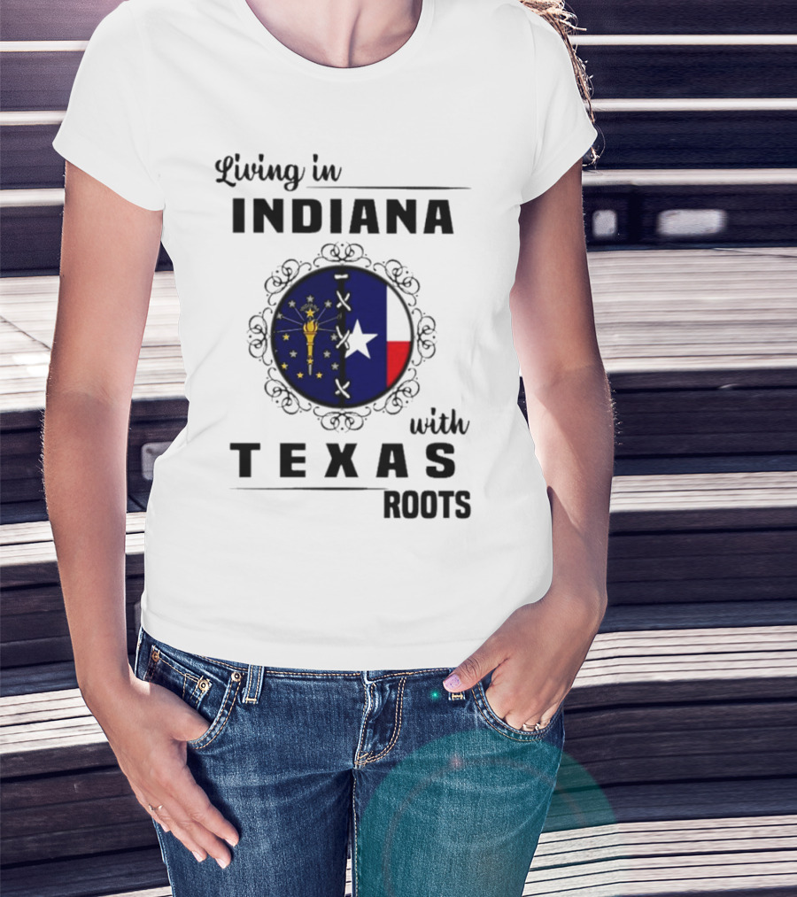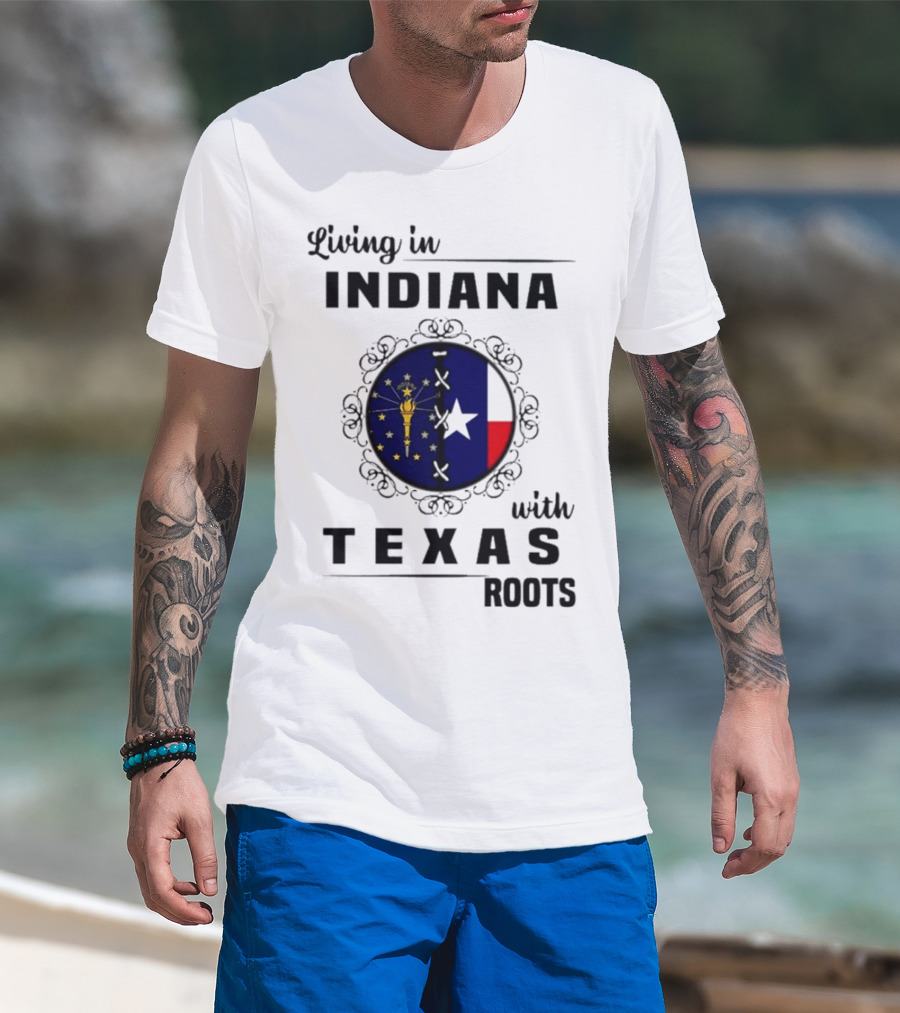 Living In Indiana With Texas Roots State Flag Fusion T-Shirt