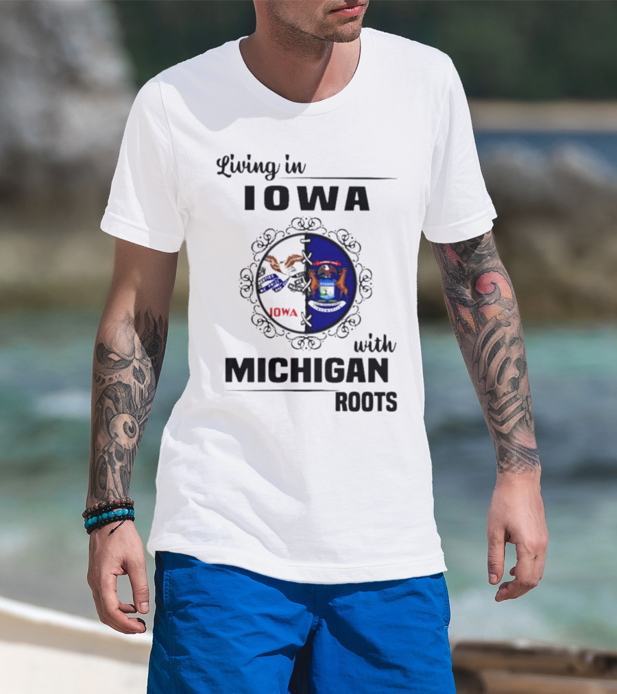 Living In Iowa With Michigan Roots State Seals T-Shirt