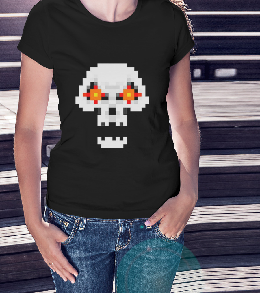 Crossing Skull Log Pixelated Gaming Skull With Red-Eyed Glare T-Shirt