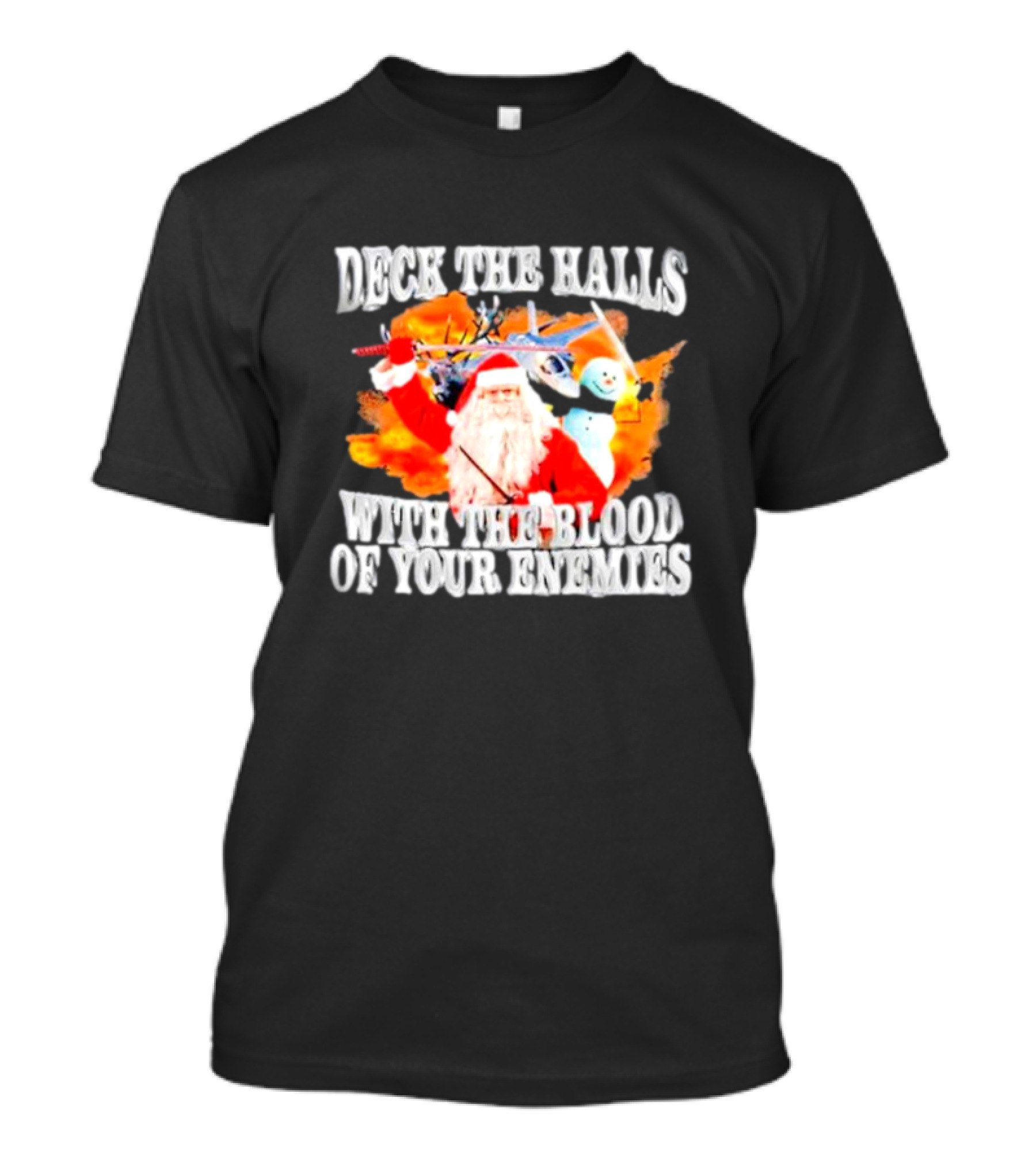 Deck The Halls With The Blood Of Your Enemies Santa Sword Snowman Explosion T-Shirt