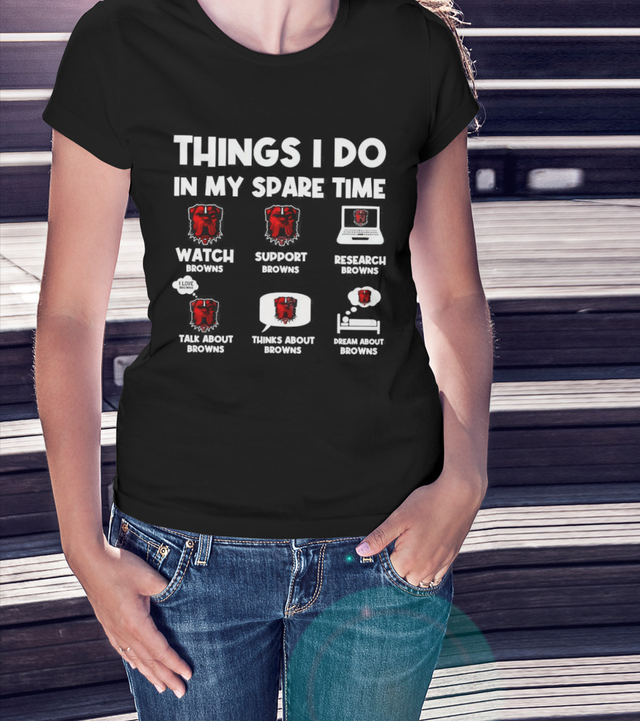 The Things I Do in My Spare Time Watch Browns Support Browns Research Browns Talk About Browns Thinks About Browns Dream About Browns T-shirt is designed for everyday wear and a consistent fit. Fabric is pre-shrunk ring-spun cotton with durable stitching. See the size chart below for exact measurements.