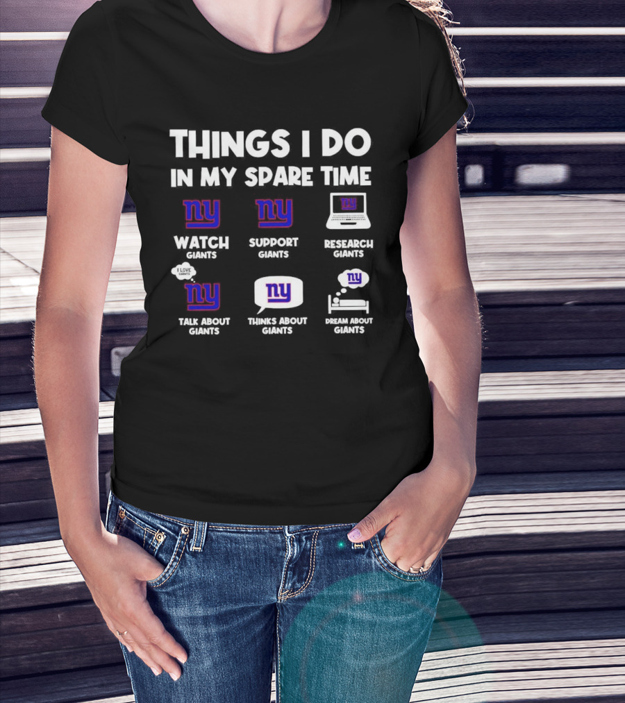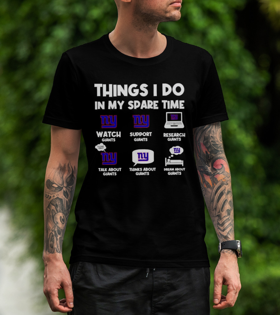 The Things I Do in My Spare Time Watch Giants Support Giants Research Giants Talk About Giants Thinks About Giants Dream About Giants T-shirt is designed for everyday wear and a consistent fit. Fabric is pre-shrunk ring-spun cotton with durable stitching. See the size chart below for exact measurements.