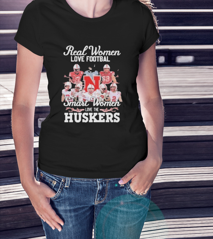 Real Women Love Football Smart Women Love The Huskers Nebraska Cornhuskers Players And Coach T-Shirt