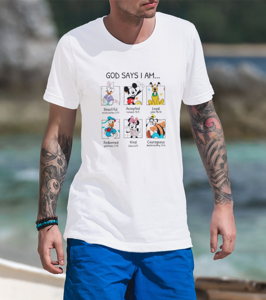 God Says I Am Beautiful Accepted Loyal Redeemed Kind Courageous Disney Characters T-Shirt