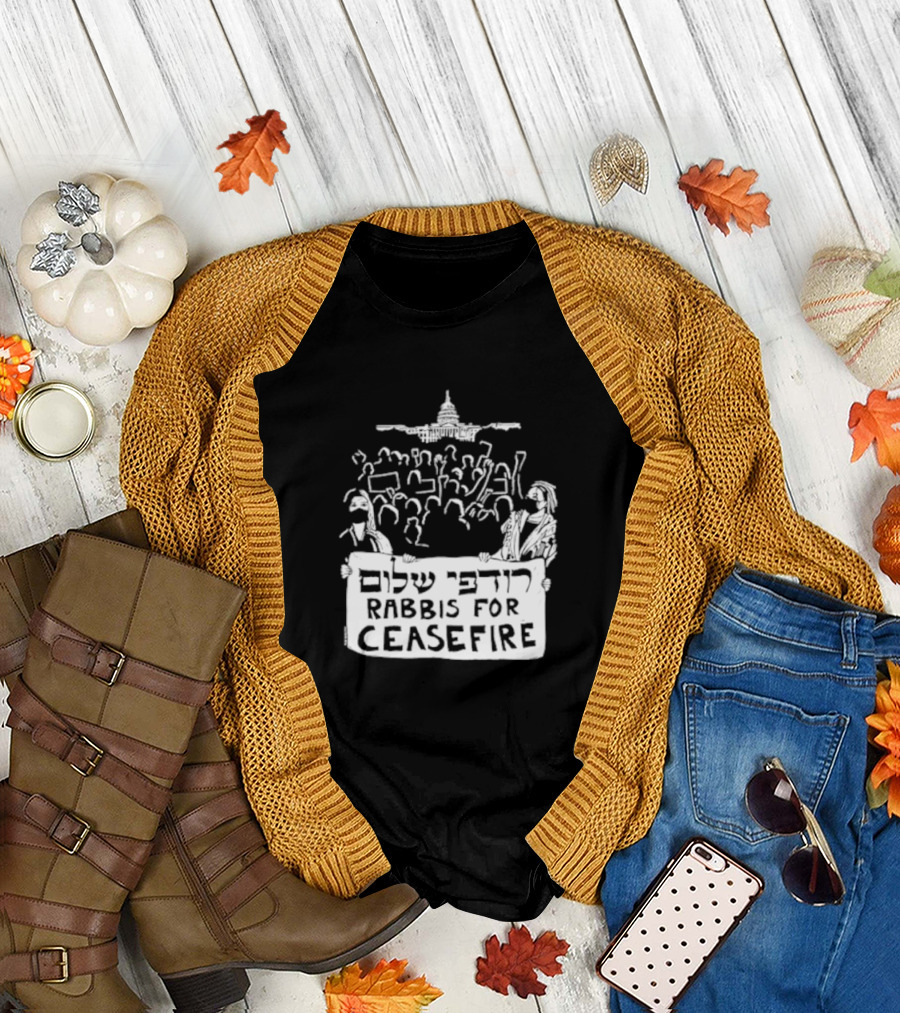 Rabbis For Ceasefire Rally At Capitol With Protesters And Hebrew Text T-Shirt