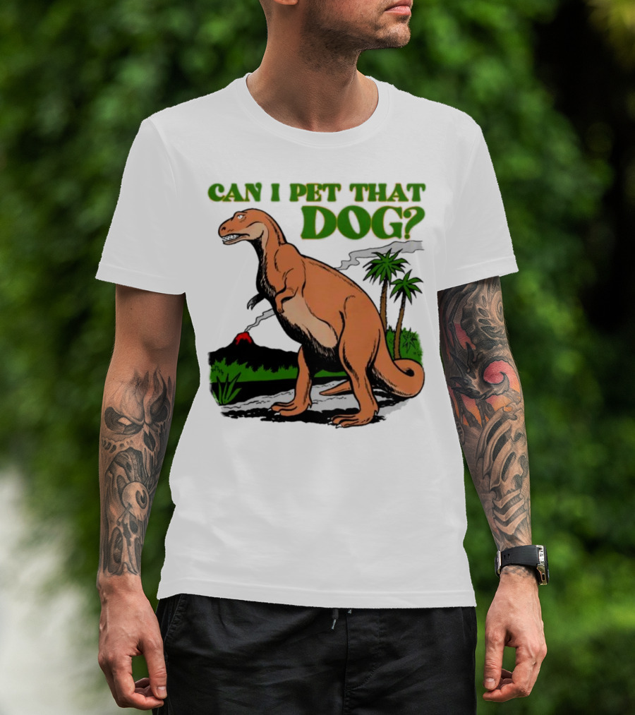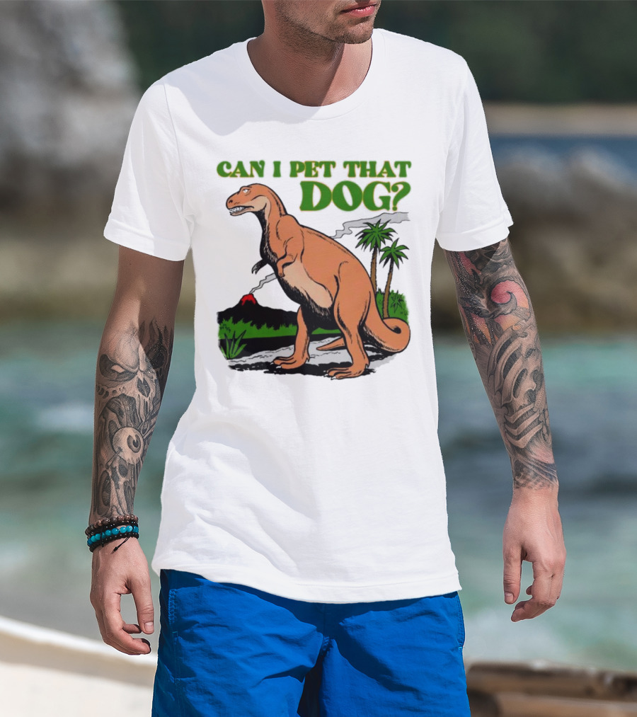 Can I Pet That Dog Dinosaur Volcano And Palm Trees T-Shirt