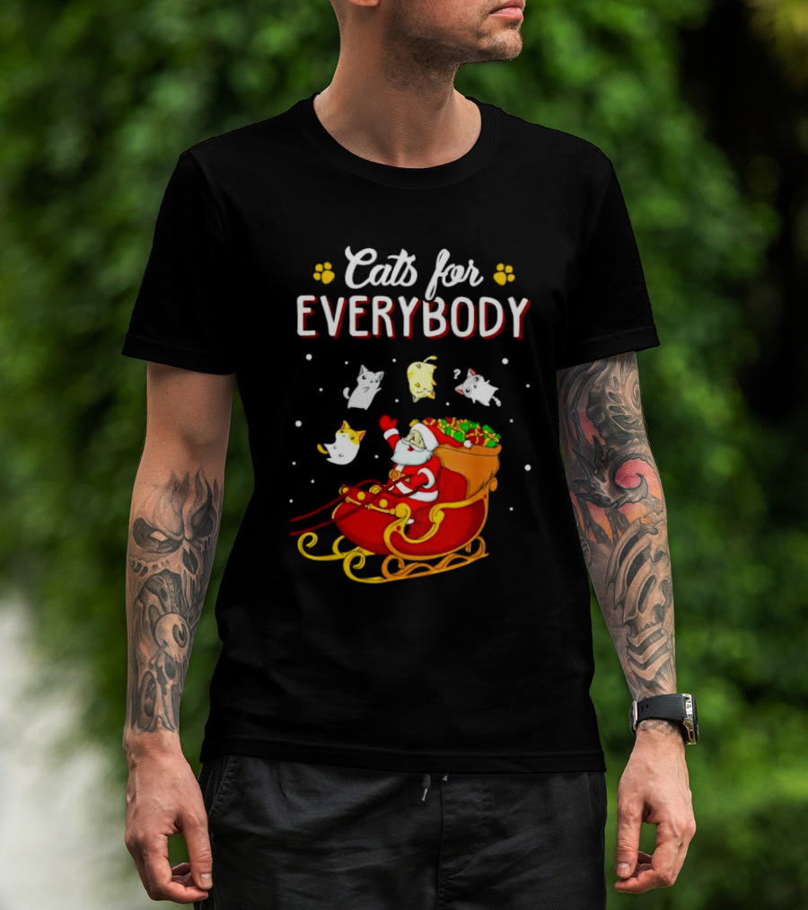 Cats For Everybody Santa With Cats Sleigh Christmas T-Shirt