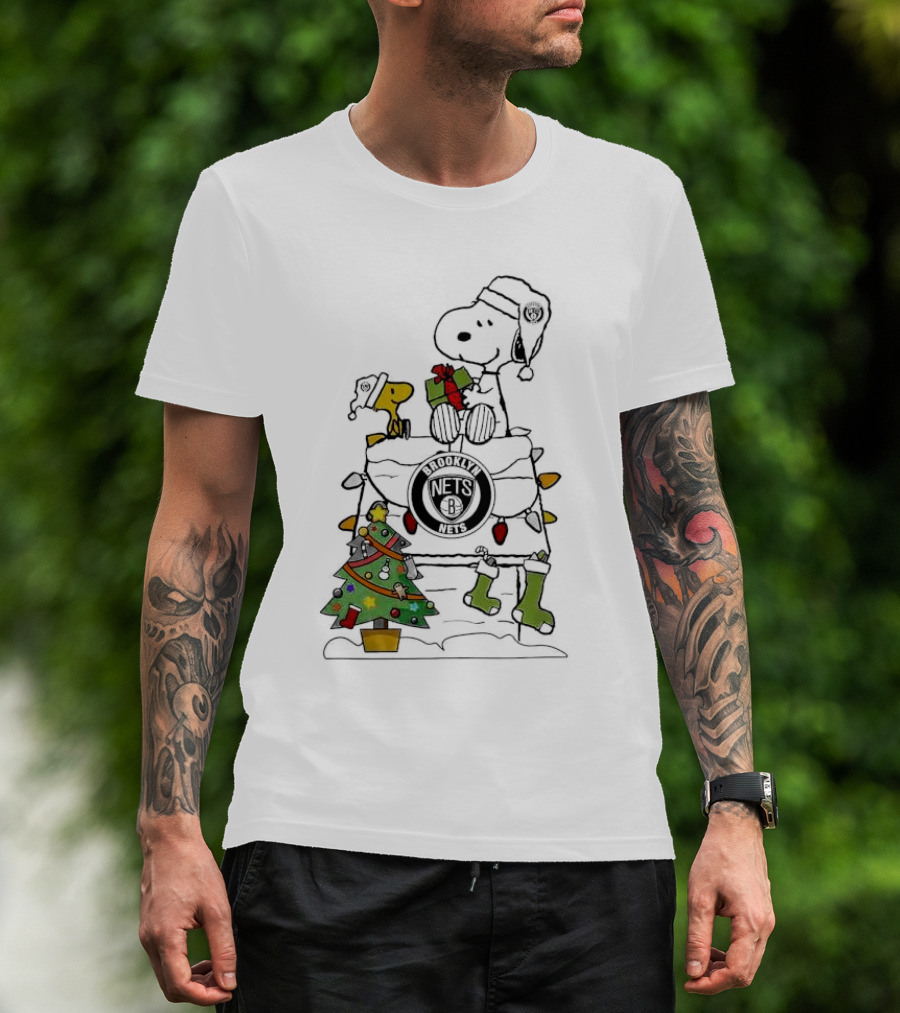 Snoopy Woodstock Christmas Igloo Brooklyn Nets Holiday Scene T-Shirt