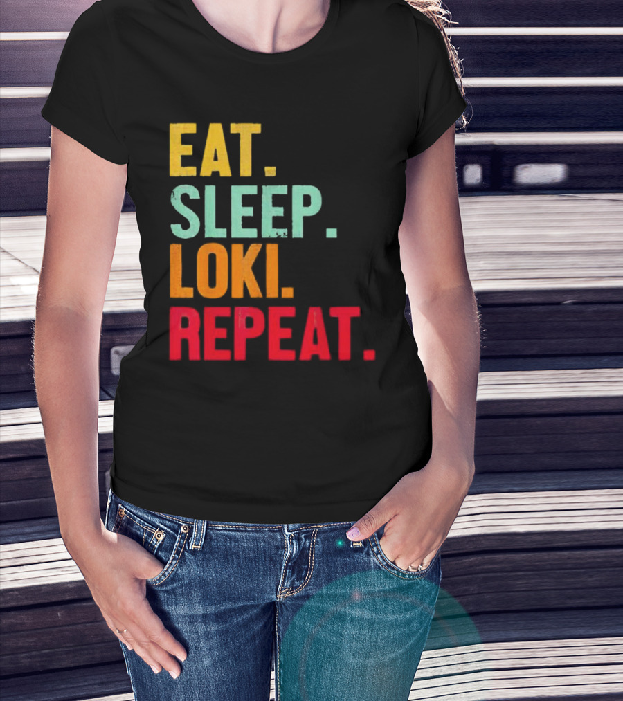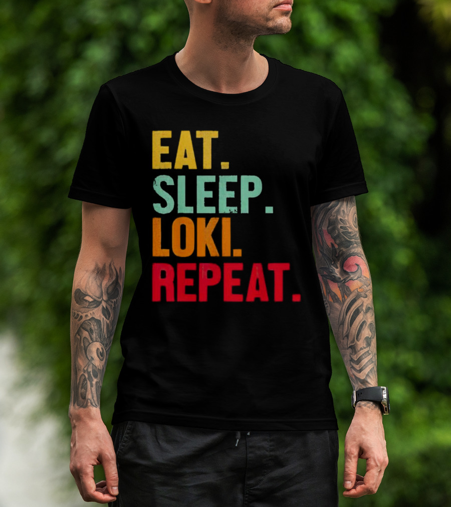 Eat Sleep Loki Repeat Marvel Fans Fandom Phrase T-Shirt
