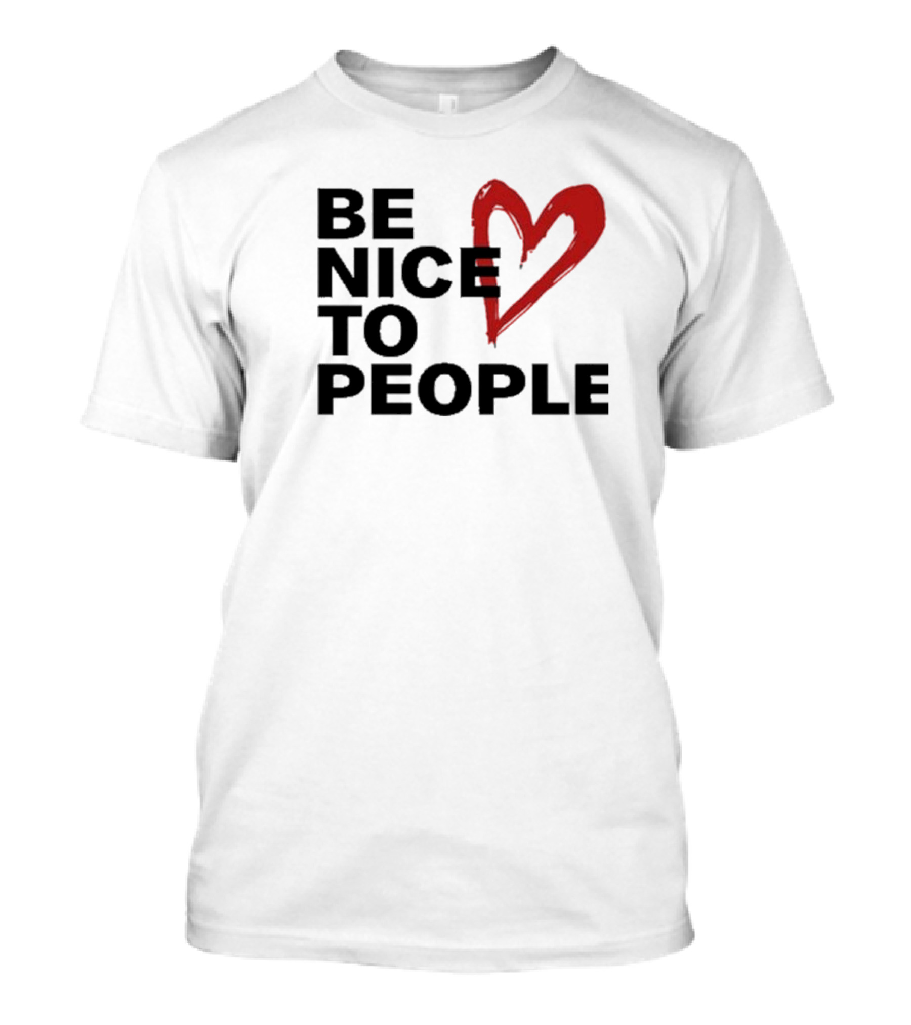 The Be Nice to People Red Heart T-shirt is designed for everyday wear and a consistent fit. Fabric is pre-shrunk ring-spun cotton with durable stitching. See the size chart below for exact measurements.