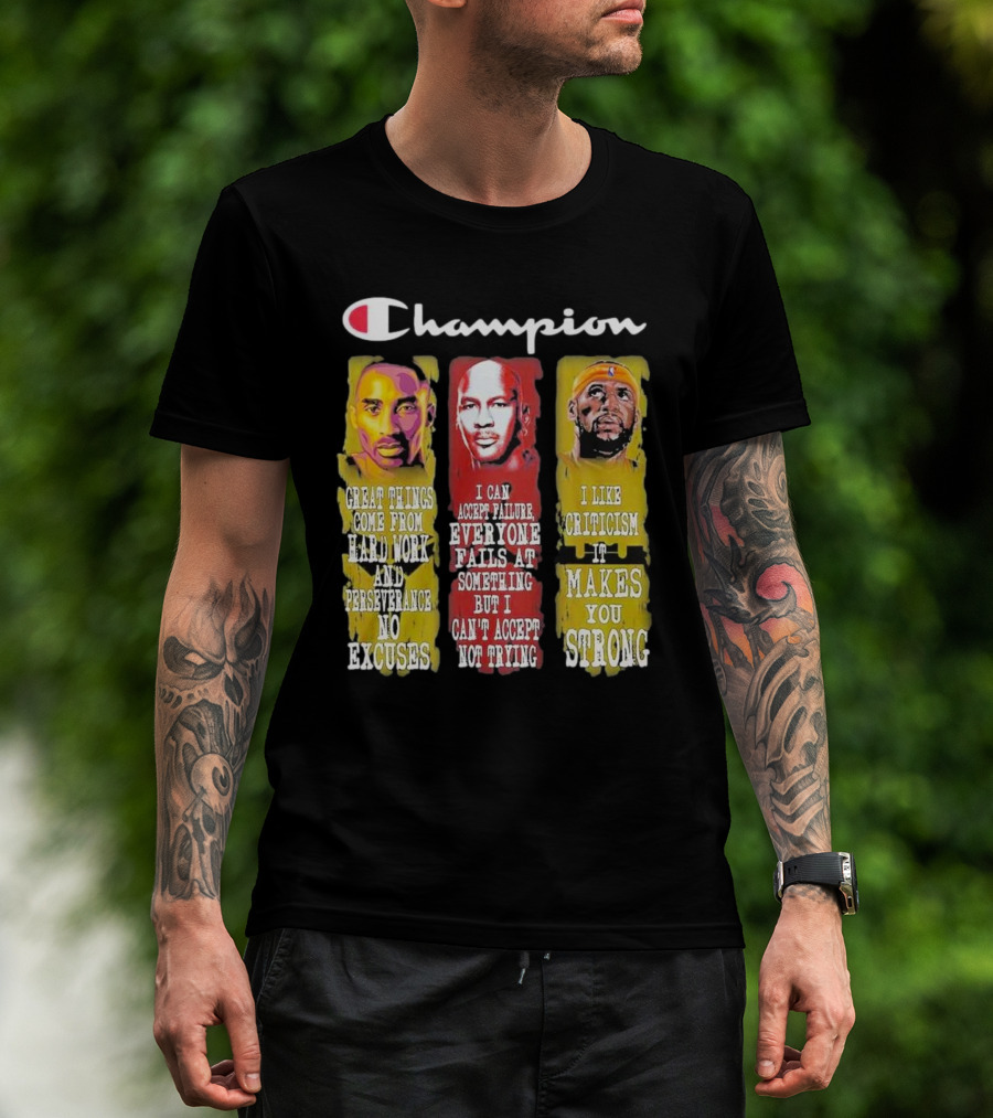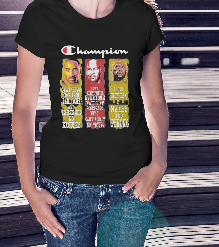 Champion Kobe Bryant LeBron James Michael Jordan Great Things Come From Hard Work T-Shirt