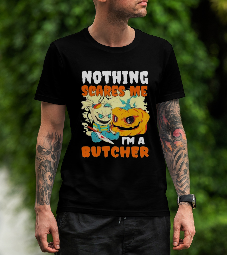 Nothing Scares Me Horror Doll With Knife And Pumpkin I'm A Butcher T-Shirt