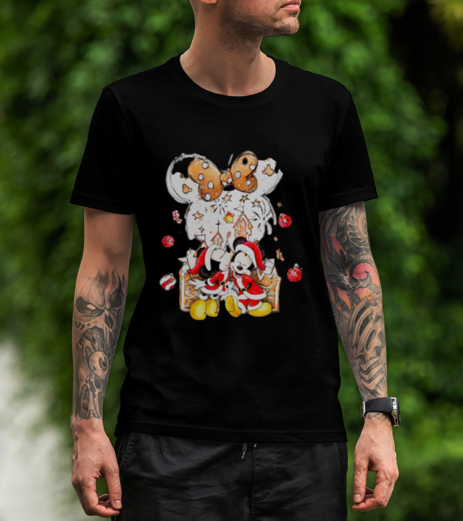Mickey And Minnie Christmas Castle Gingerbread Mouse Ears Holiday Scene T-Shirt