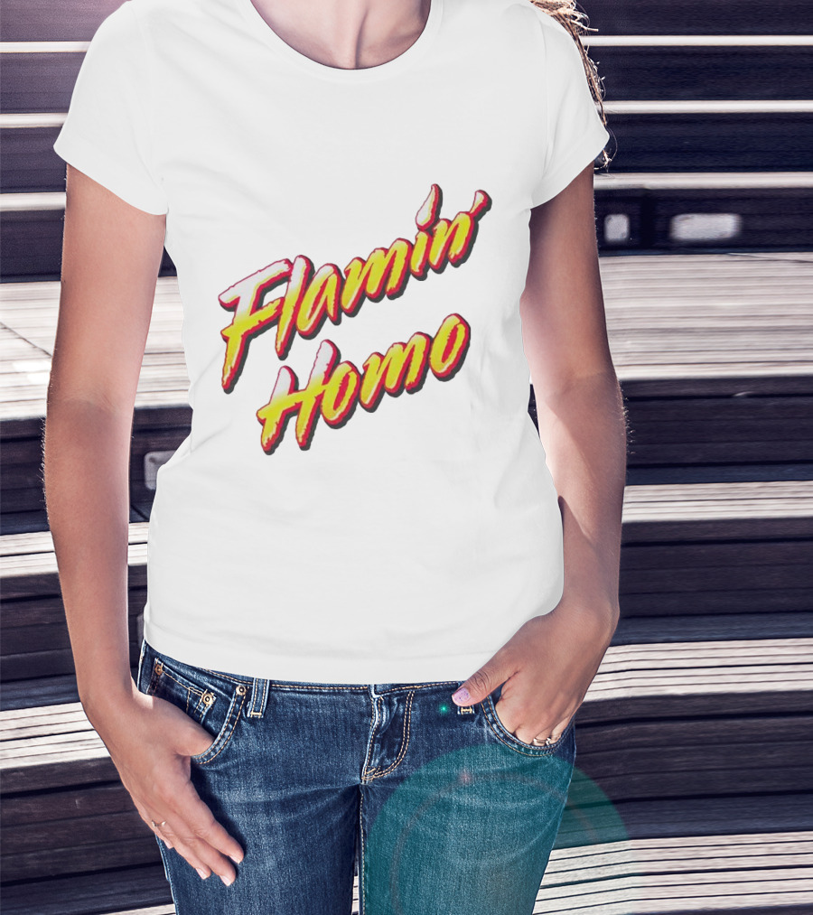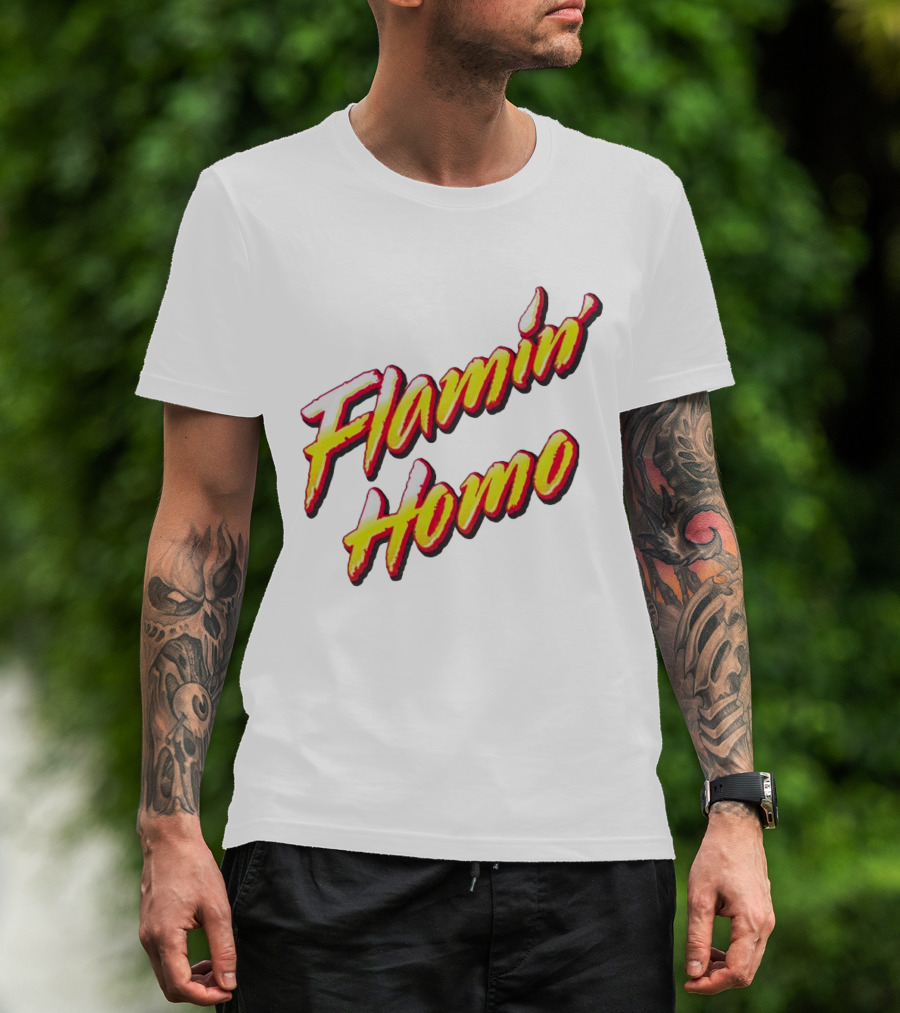 The Flamin’ Homo T-shirt is designed for everyday wear and a consistent fit. Fabric is pre-shrunk ring-spun cotton with durable stitching. See the size chart below for exact measurements.