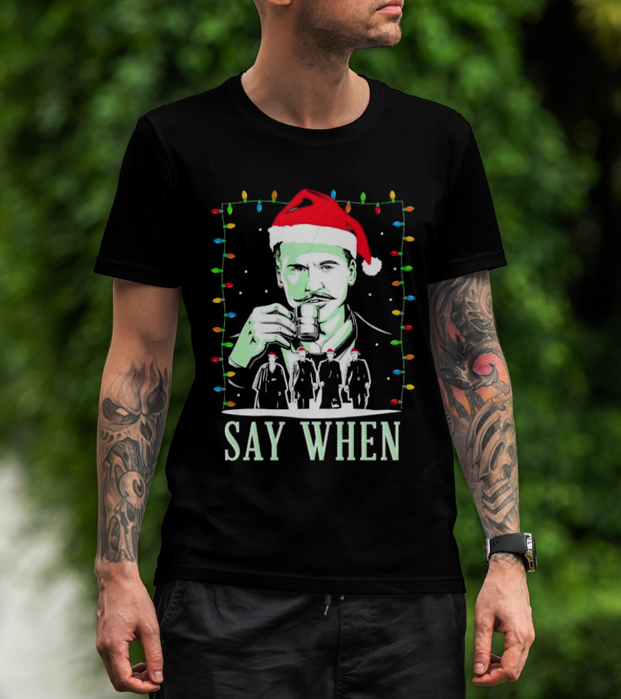 Doc Holliday Say When Christmas Lights Santa Hat T-Shirt