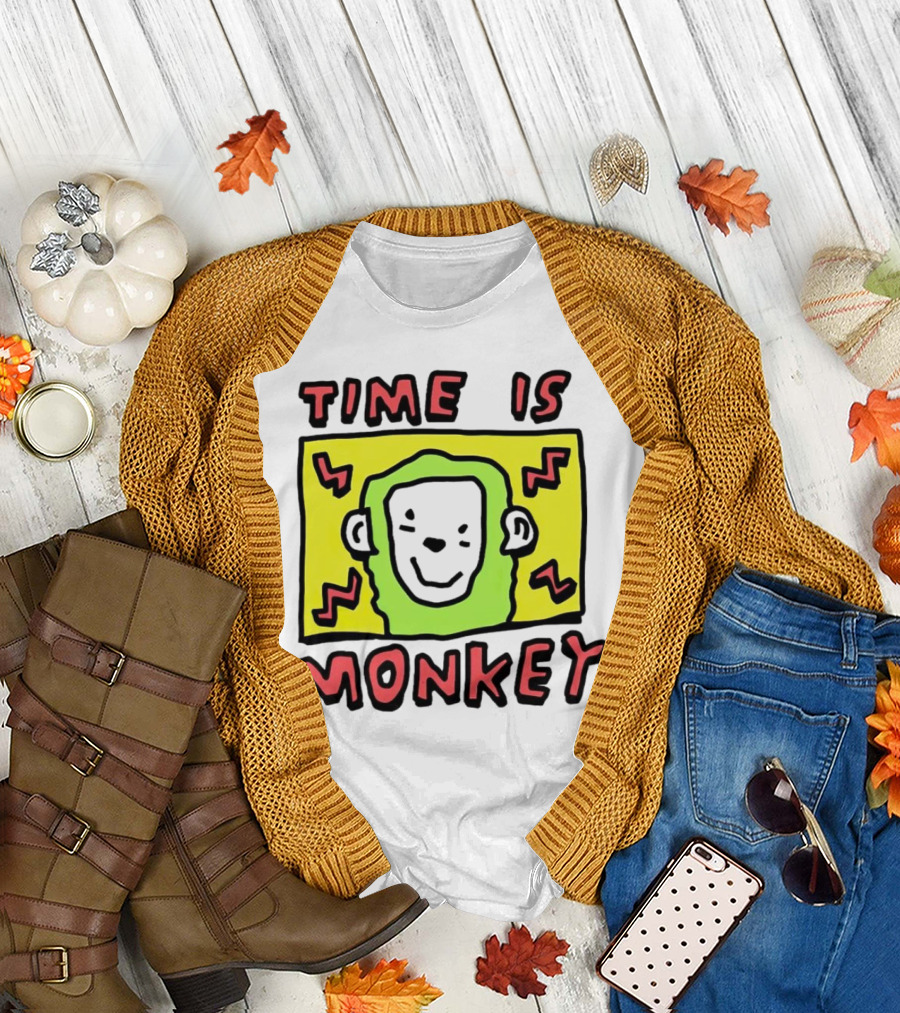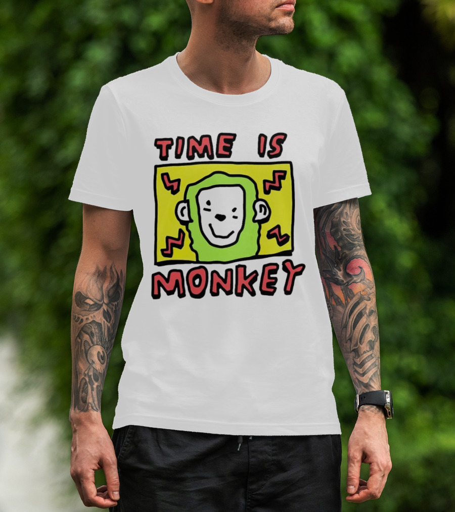 Time Is Monkey Green Highlighted Cartoon Face With Zigzag Lines T-Shirt