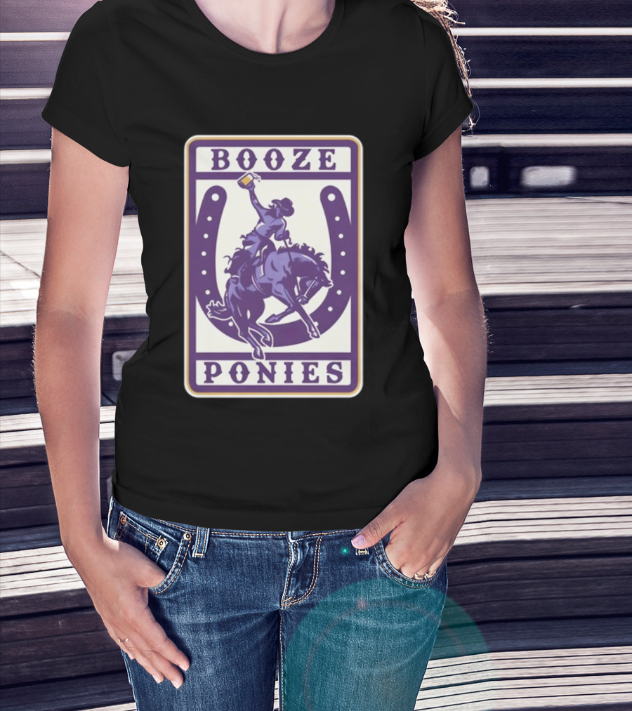 Booze Ponies Rodeo Rider With Horseshoe And Drink Cup T-Shirt