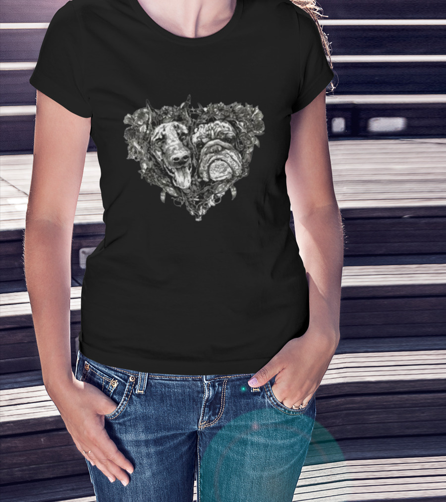 The Hounds of Love Dog Heart T-shirt is designed for everyday wear and a consistent fit. Fabric is pre-shrunk ring-spun cotton with durable stitching. See the size chart below for exact measurements.