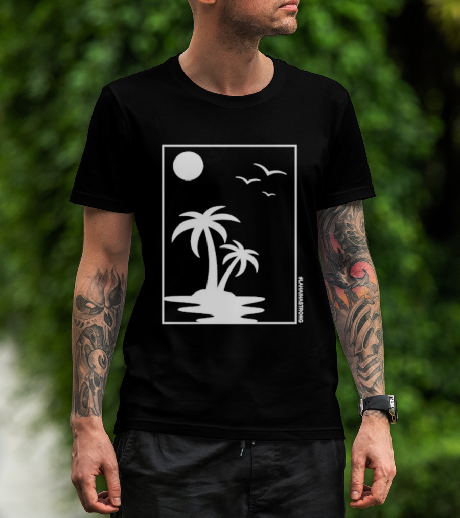 Not Enough Nelsons Lahaina Strong Palm Trees And Birds Scene T-Shirt