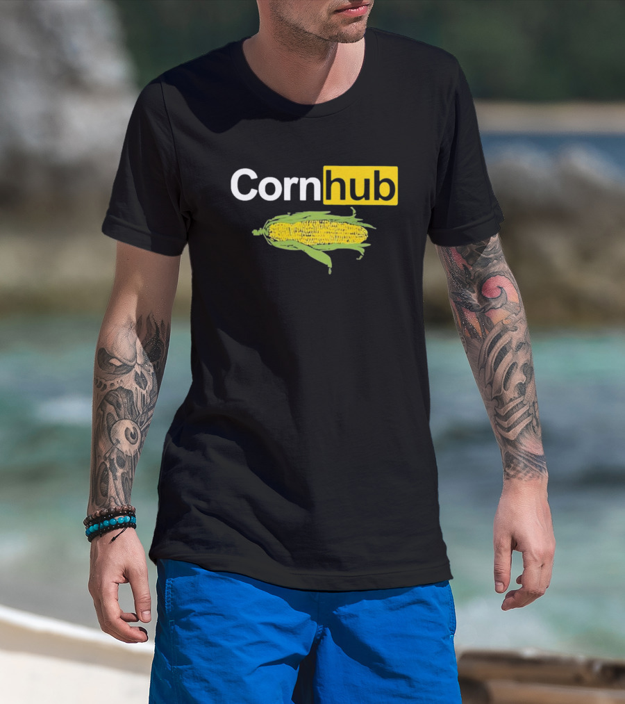 The Corn Hub Parody with Corn Cob T-shirt is designed for everyday wear and a consistent fit. Fabric is pre-shrunk ring-spun cotton with durable stitching. See the size chart below for exact measurements.