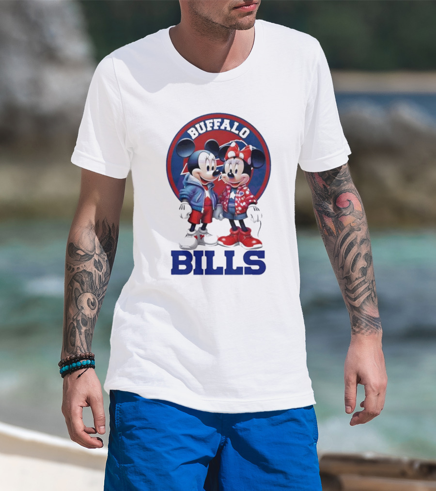 Buffalo Bills Mickey And Minnie Mouse In Team Spirit T-Shirt