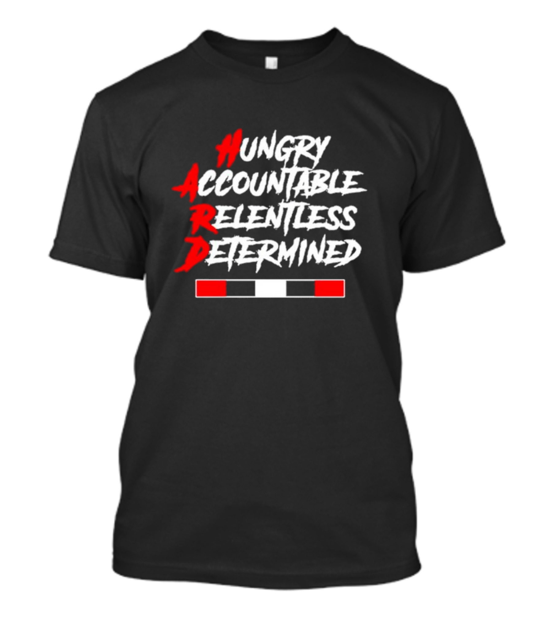 Hungry Accountable Relentless Determined Red White Black Bold Letters T-Shirt