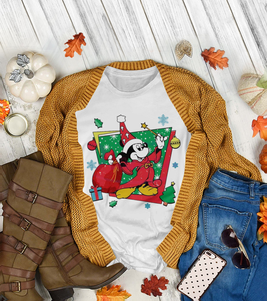 Mickey Sorcerers Apprentice Christmas 90s Magic Holiday T-Shirt