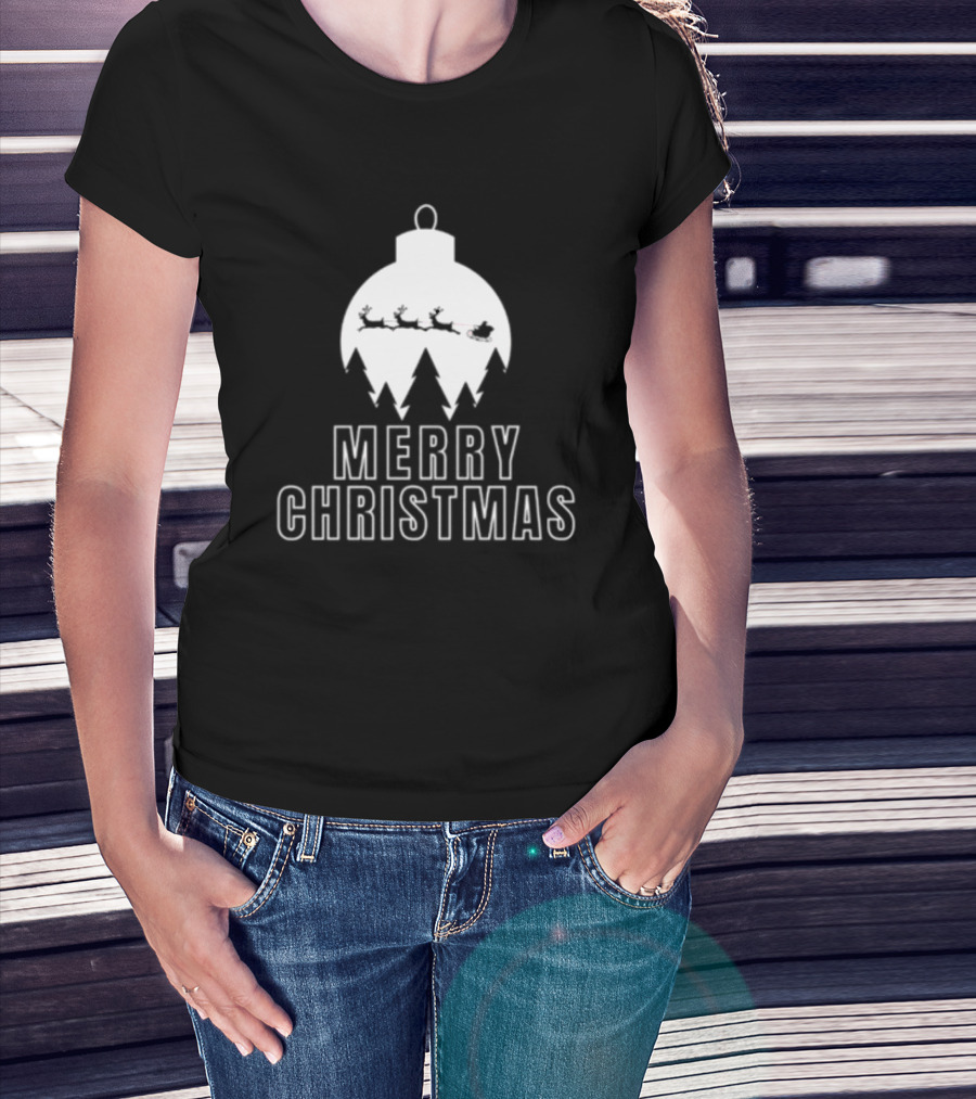 Merry Christmas Ornament Reindeer Sleigh And Trees T-Shirt