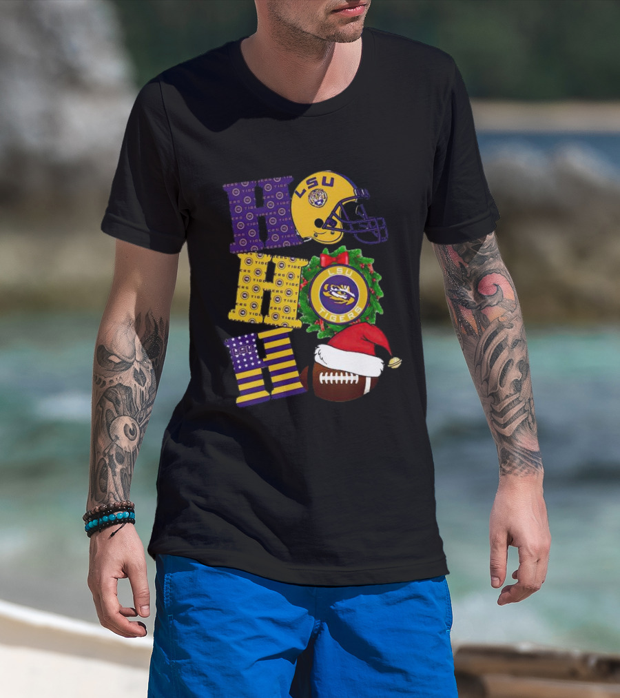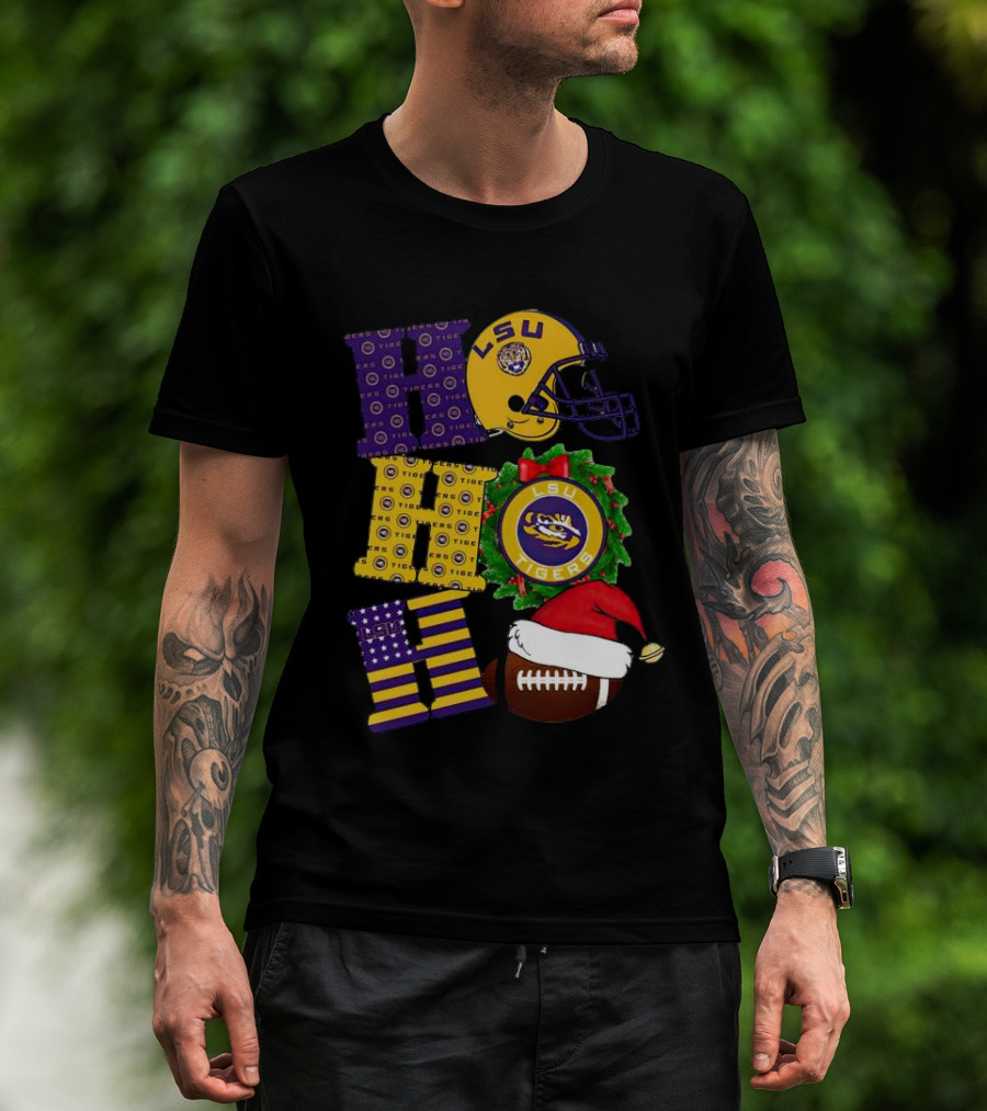 LSU Tigers Christmas Helmet Wreath Football Ho Ho Ho T-Shirt