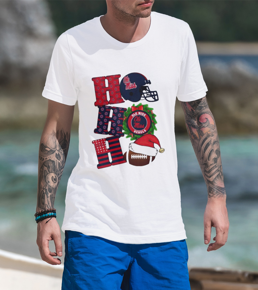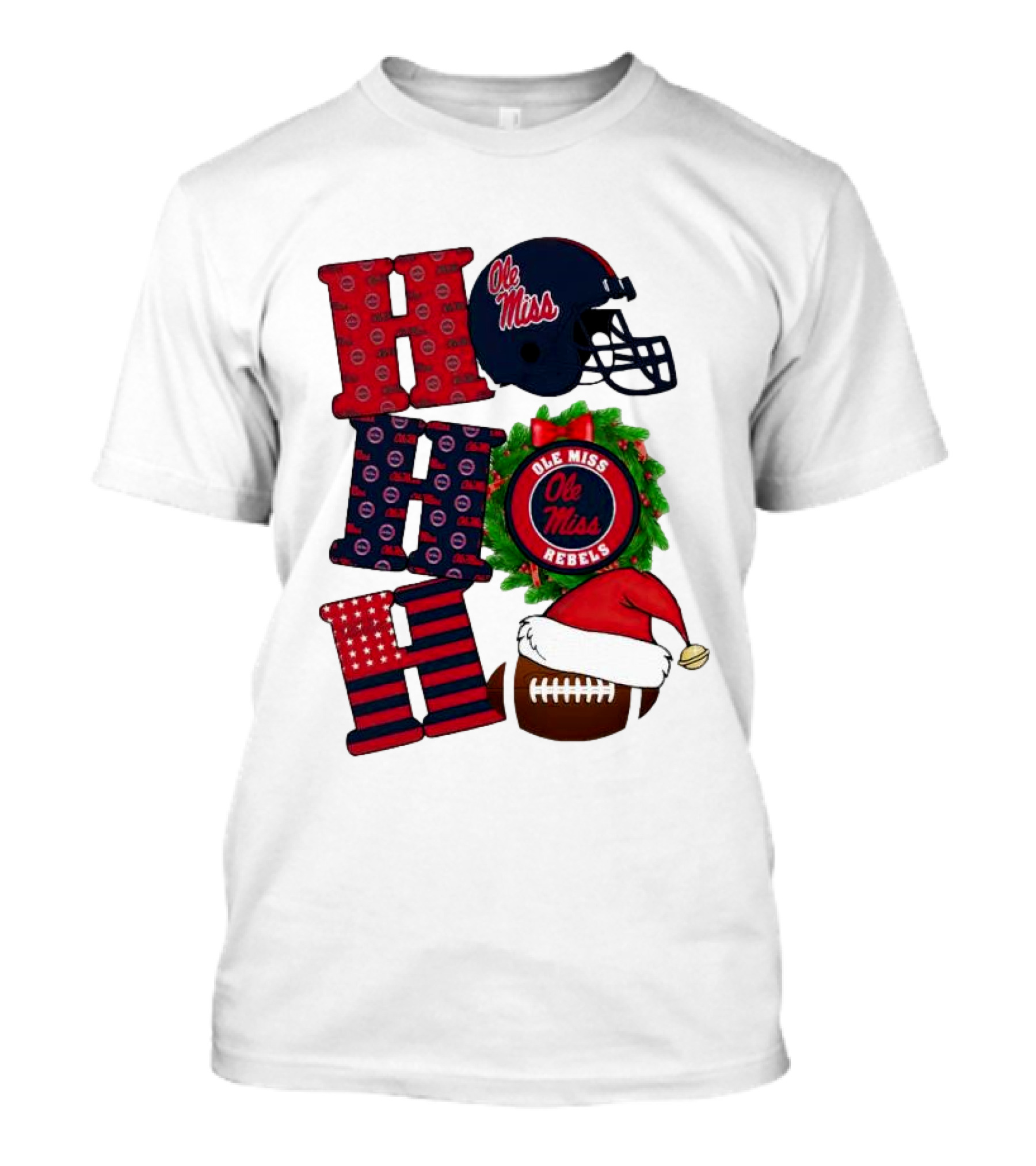 Ole Miss Rebels Christmas Football Helmet Wreath Ho Ho Ho T-Shirt