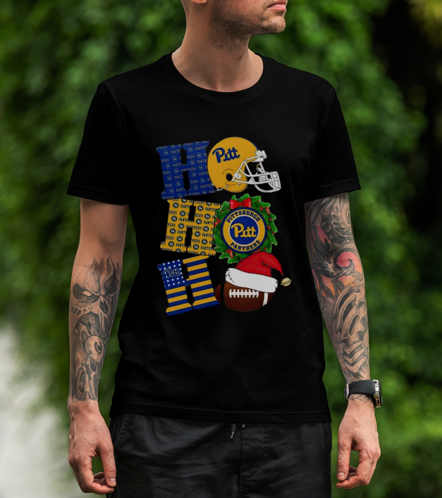 Pitt Panthers Christmas Helmet Wreath Football Ho Ho Ho T-Shirt