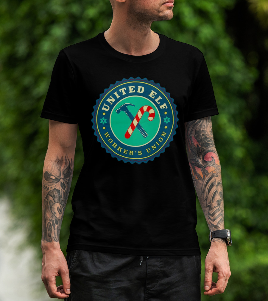 United Elf Worker's Union Candy Cane And Hammer Emblem T-Shirt