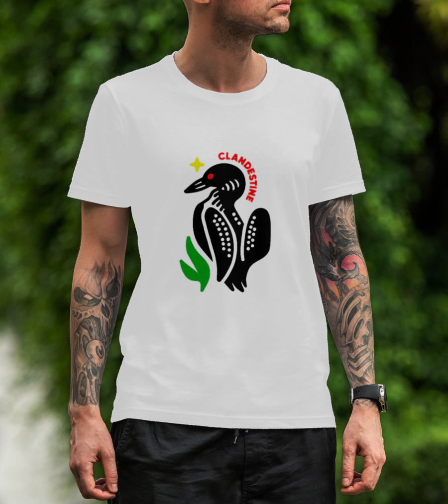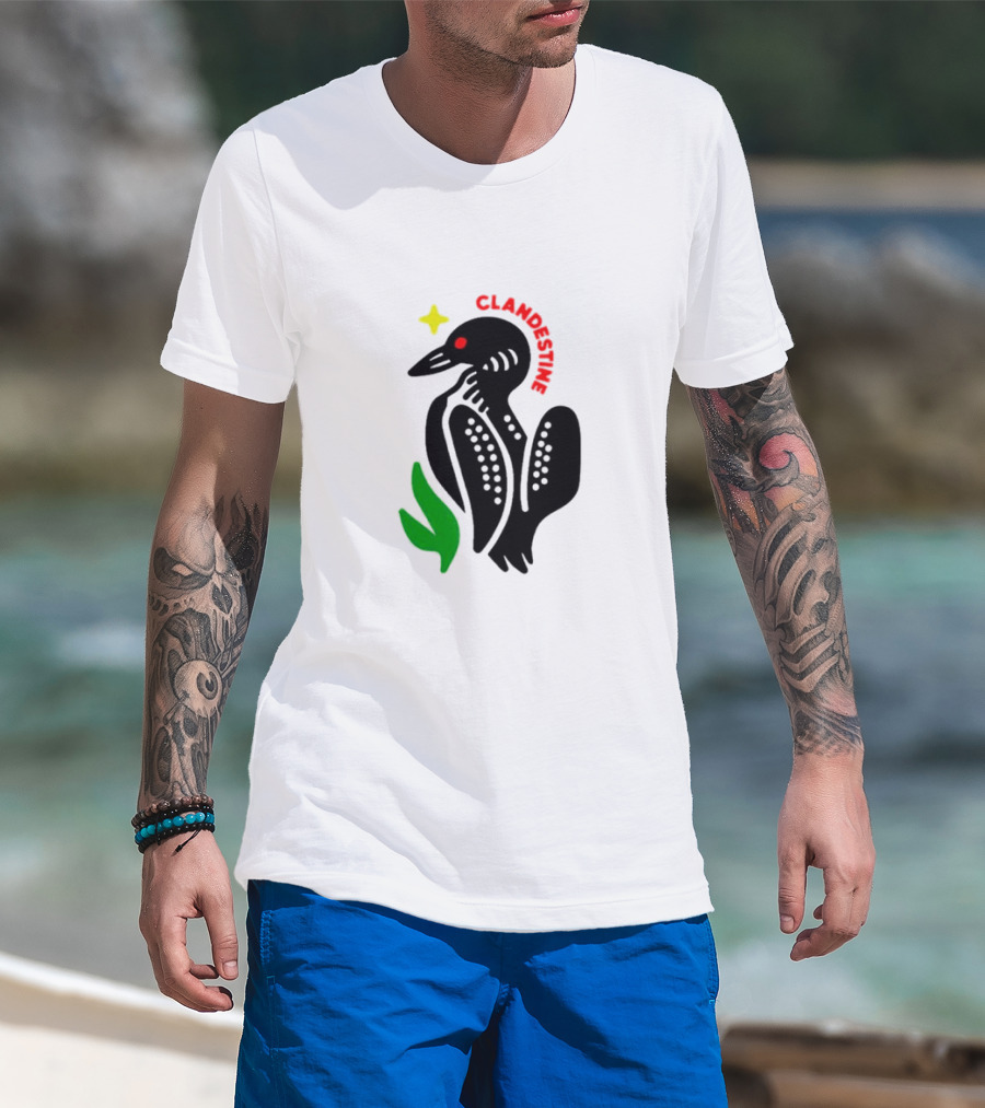 Clandestine Loon Bird With Star And Green Leaf Elements T-Shirt