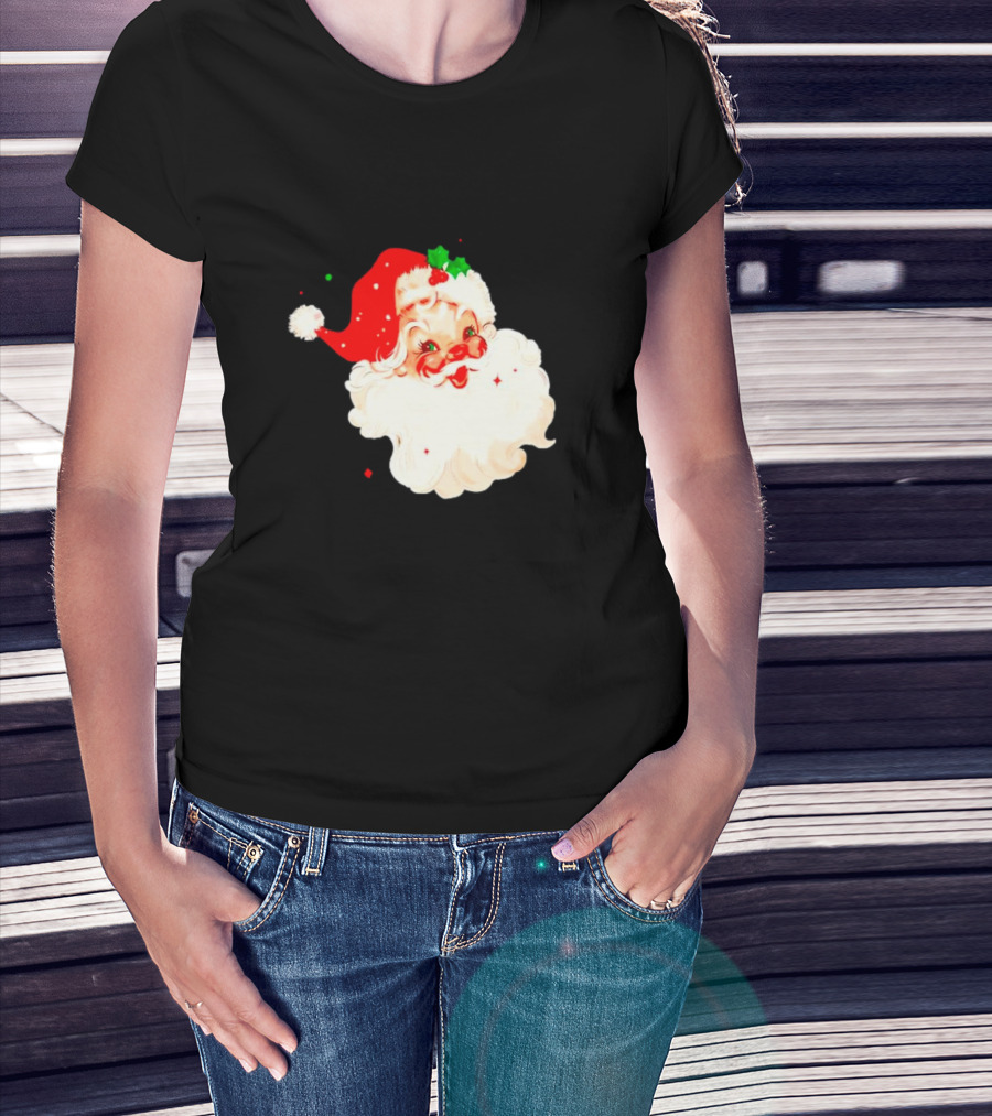 Santa Christmas Vintage Retro Style Holly Berries T-Shirt