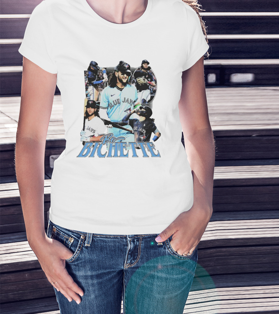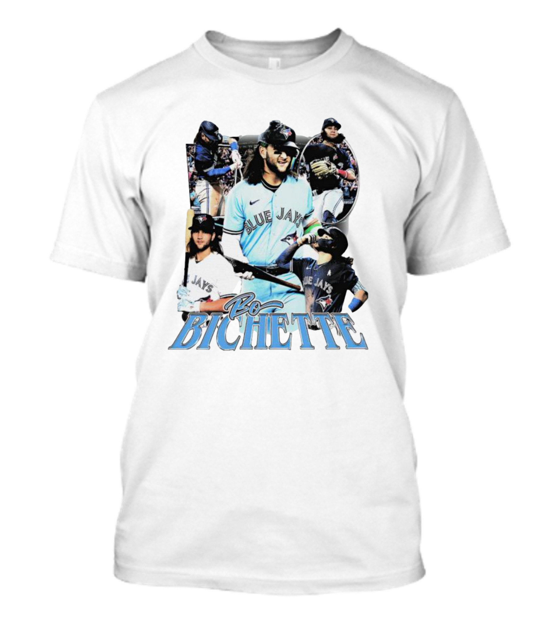 The Toronto Blue Jays Bo Bichette Collage MLB Collector's Edition T-shirt is designed for everyday wear and a consistent fit. Fabric is pre-shrunk ring-spun cotton with durable stitching. See the size chart below for exact measurements.
