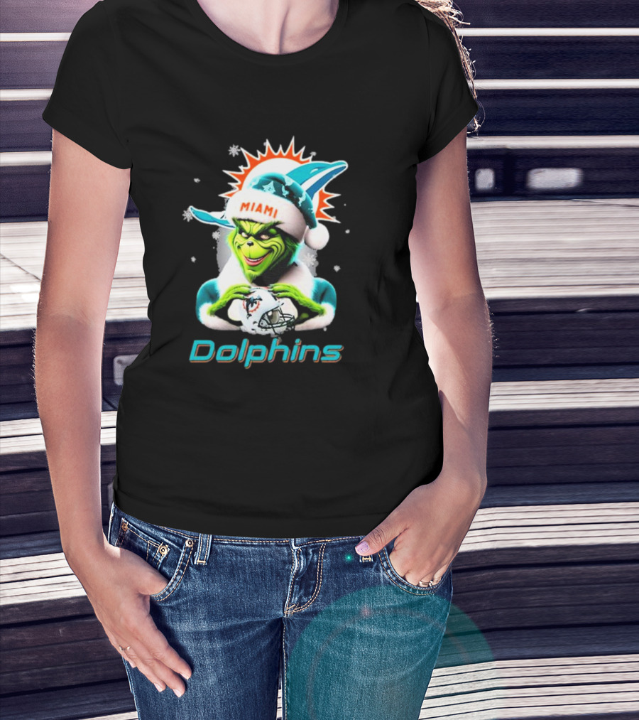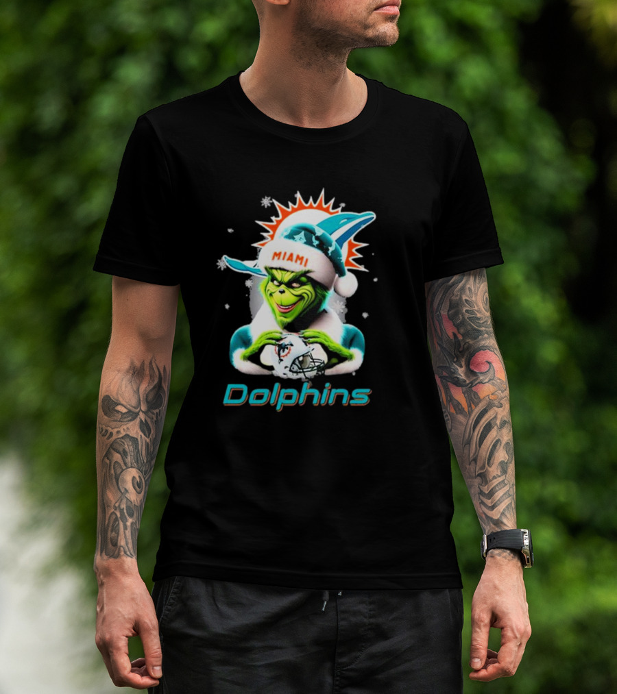 Miami Dolphins Christmas Grinch Santa Hat T-Shirt
