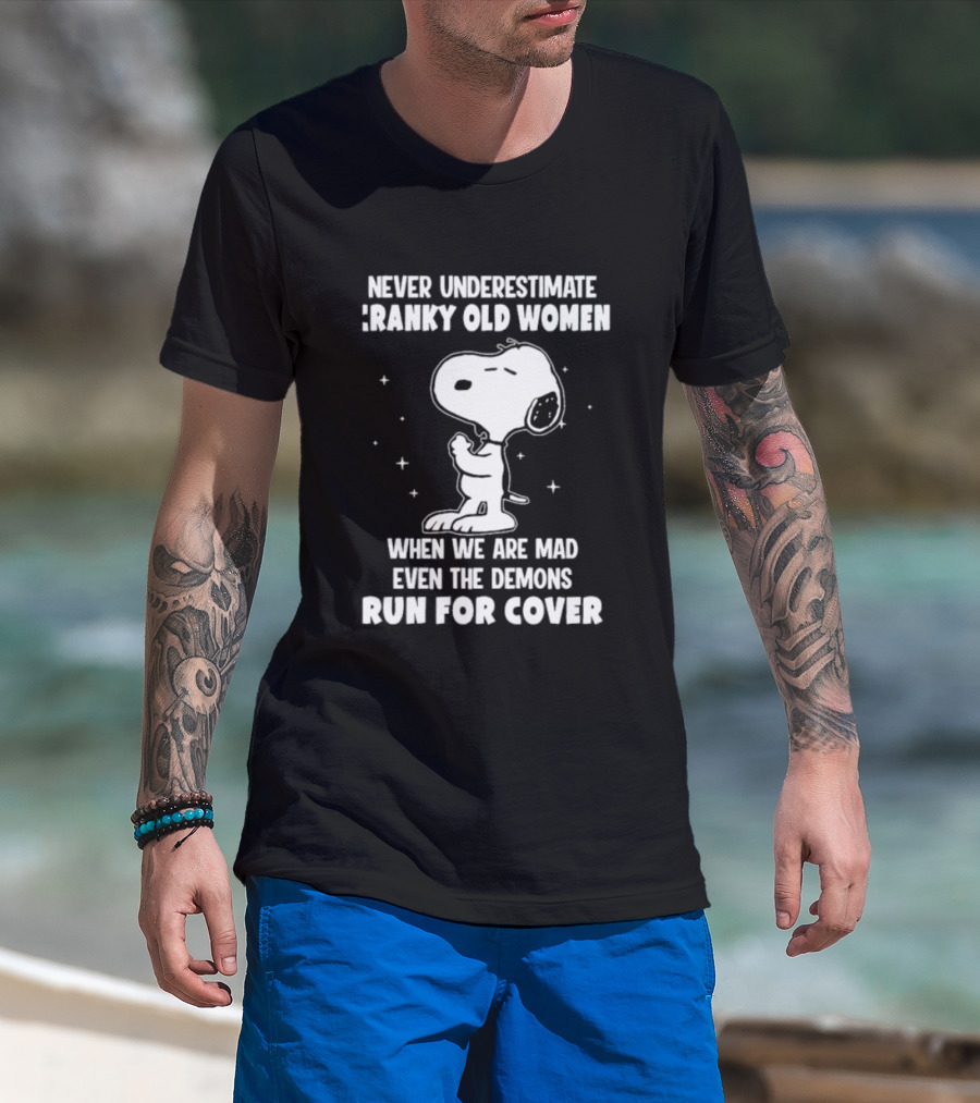 Never Underestimate Cranky Old Women When We Are Mad Even The Demons Run For Cover Snoopy T-Shirt
