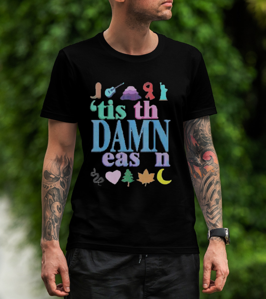 Christmas ’tis The Damn Season Colorful Icons And Symbols T-Shirt