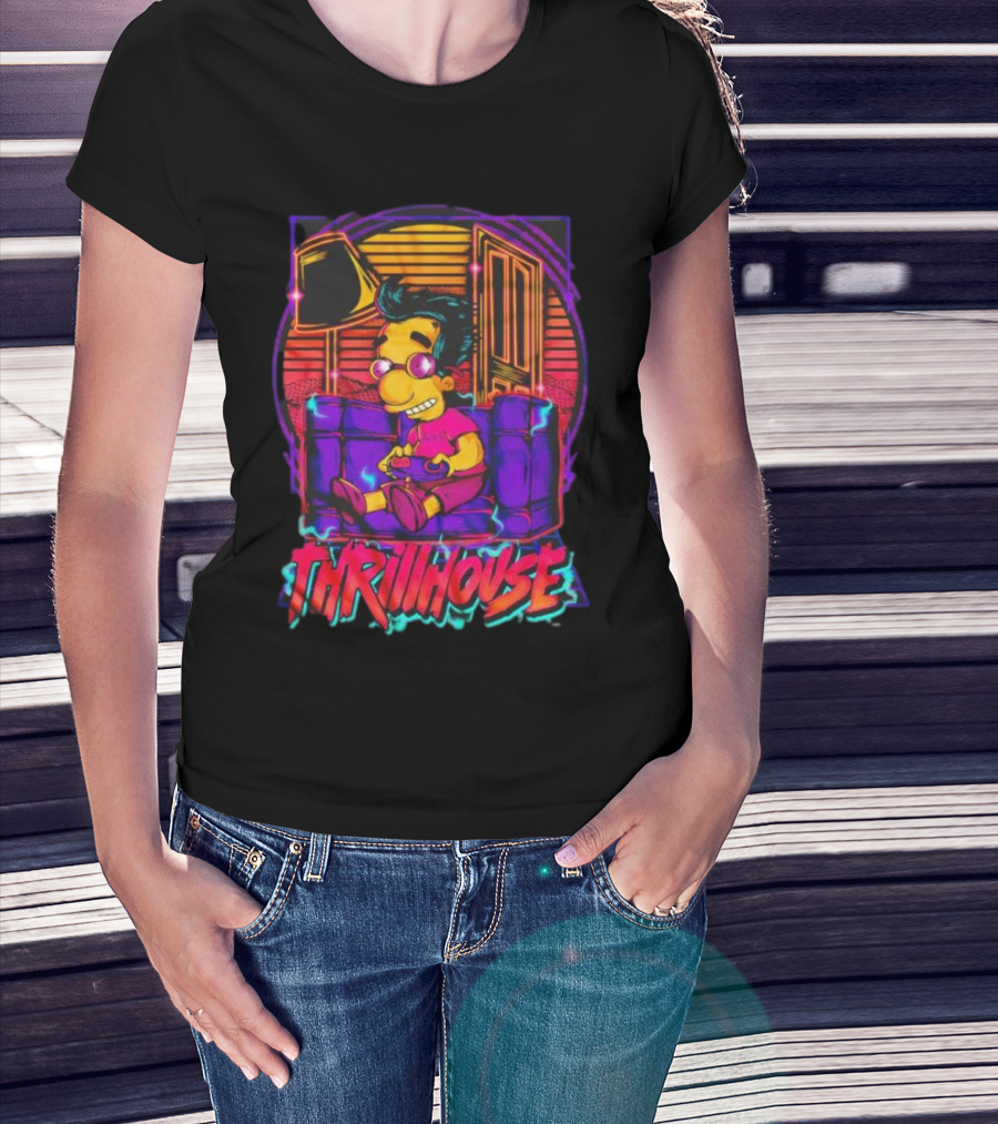 Milhouse Van Houten Thrillhouse Retro Gaming Neon Scene T-Shirt