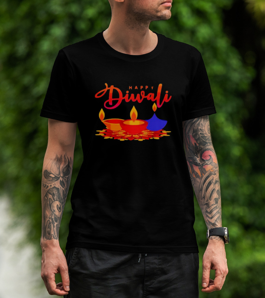 Happy Diwali Festival Of Light With Colorful Diyas T-Shirt