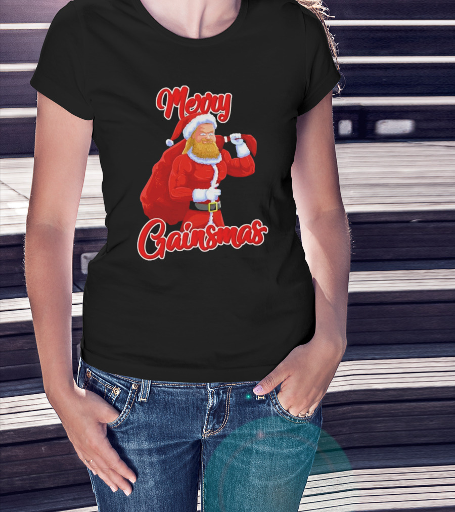 Merry Gainsmas Fitness Santa Bodybuilder T-Shirt