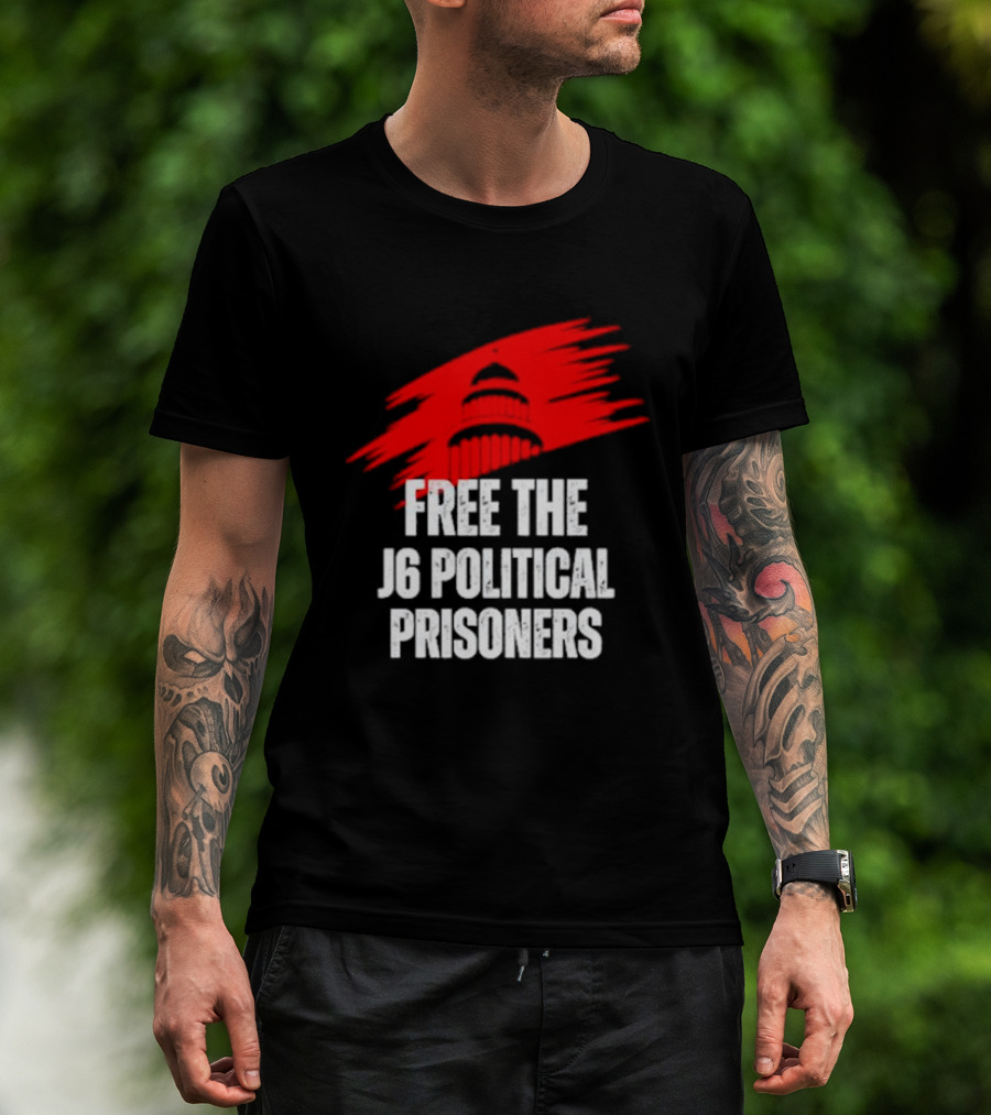 Free The J6 Political Prisoners Capitol Building Red Brushstroke T-Shirt