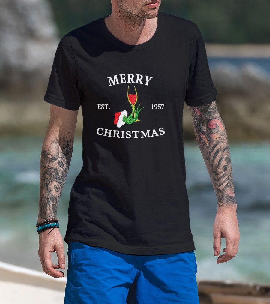 Merry Christmas Grinch Hand Wine Glass Est 1957 T-Shirt