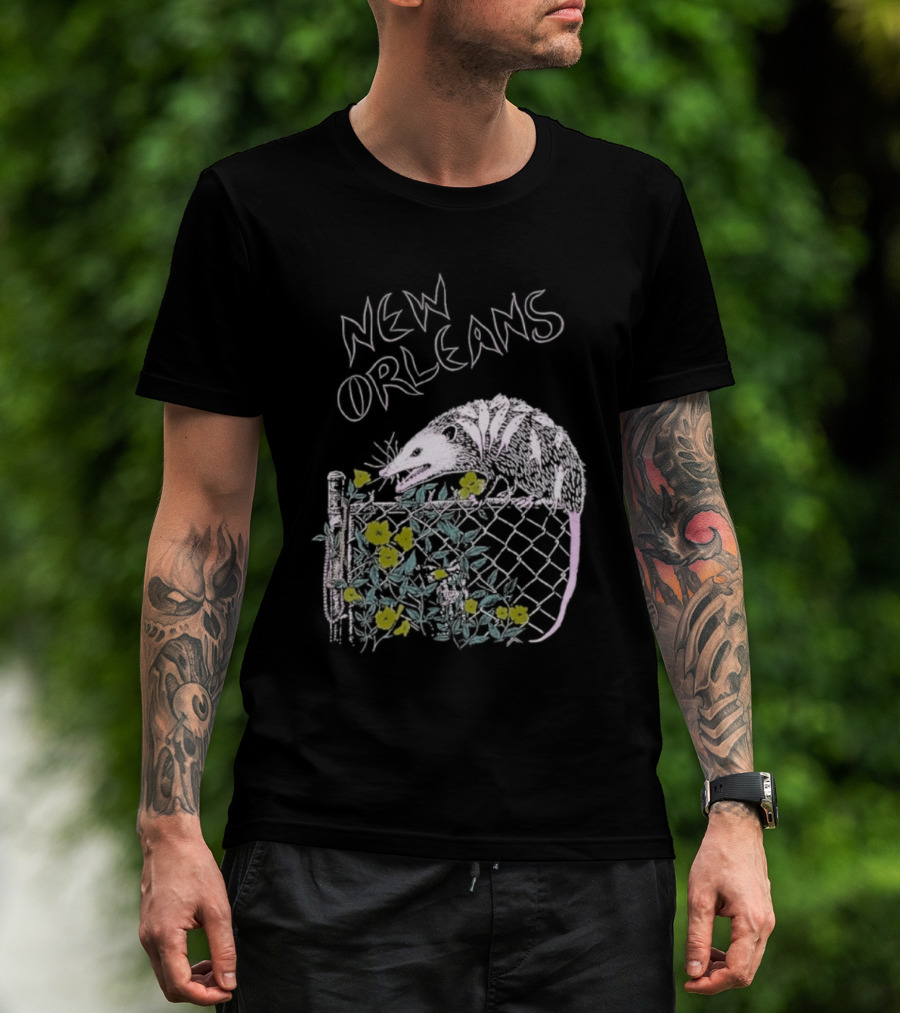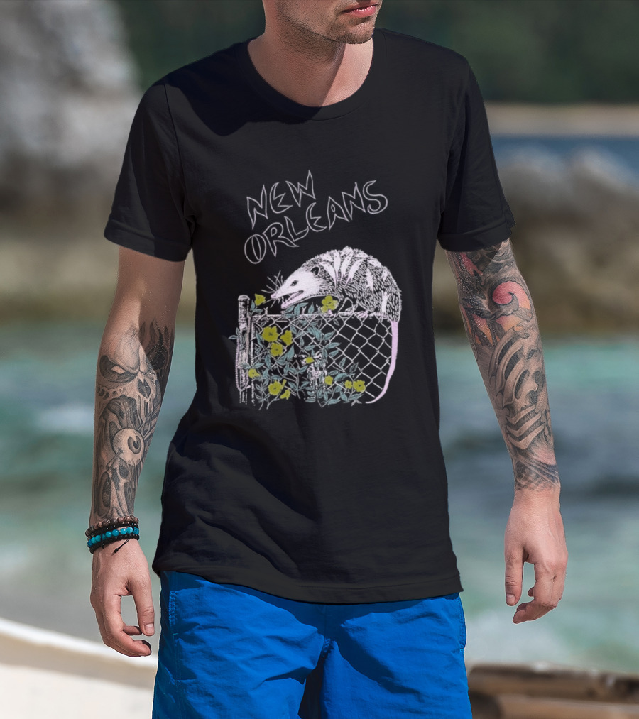 New Orleans Possum On Fence With Flowers T-Shirt