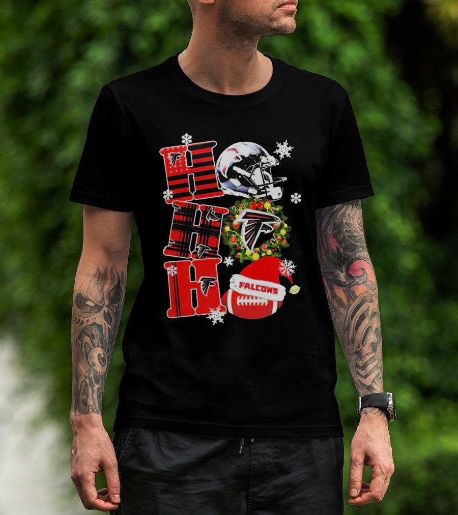 Atlanta Falcons Ho Ho Ho Merry Christmas Helmet Wreath Snowflakes Football Holiday T-Shirt