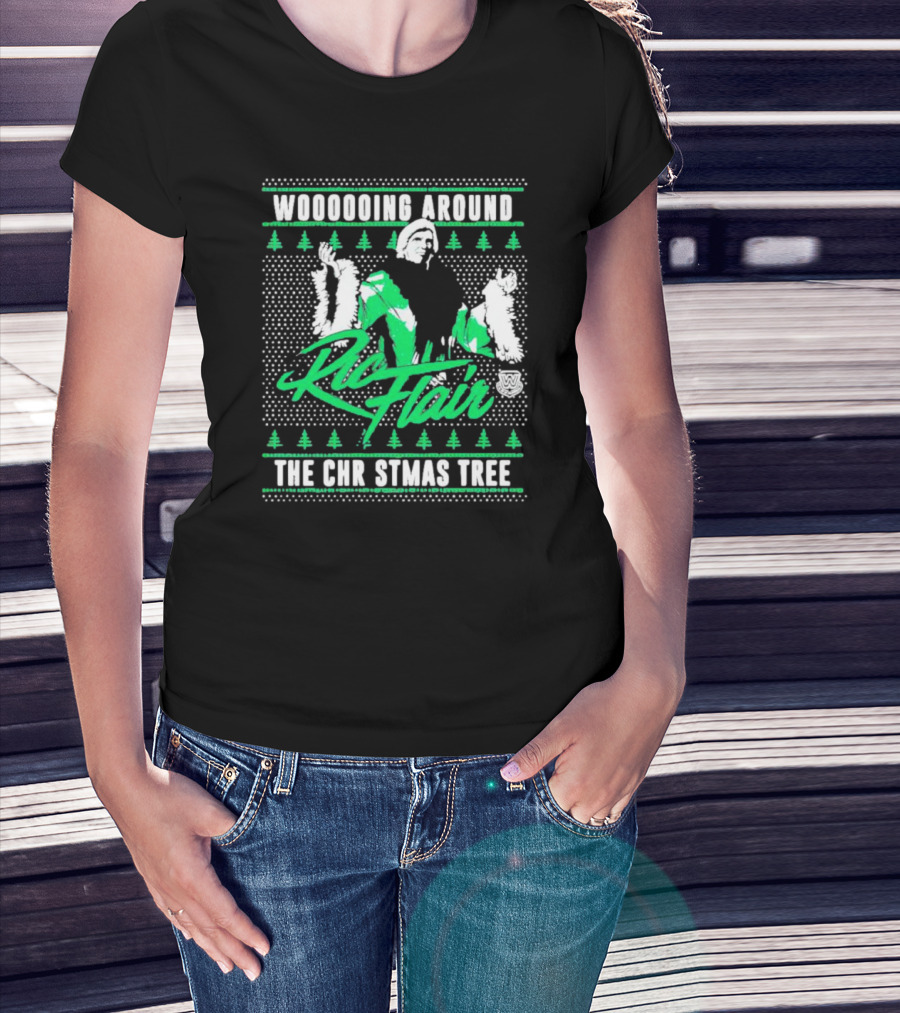 Woooooing Around The Christmas Tree Ric Flair Ugly Faux Knit T-Shirt